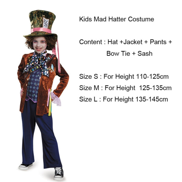 Alices Women Wondelands costume Boys Mad Adult Hatterer Costume Family Halloween Cosplay