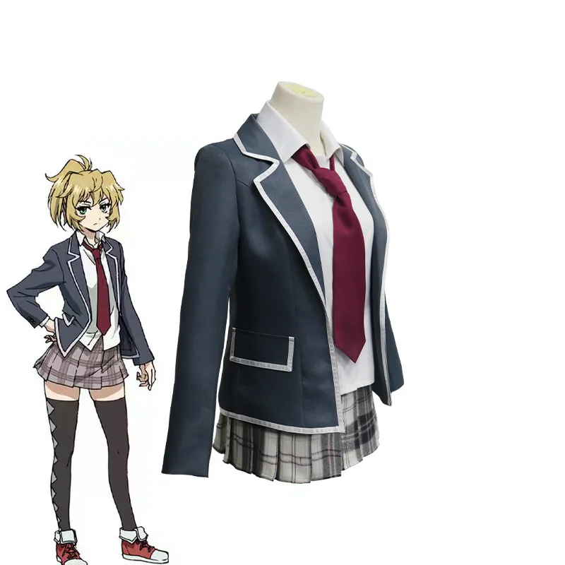 Anime High Rise Invasion Cosplay Kostüm Mayuko Nise Frauen JK Uniform Rock Anzug Jacke Socken Hemd Krawatte Rock Halloween