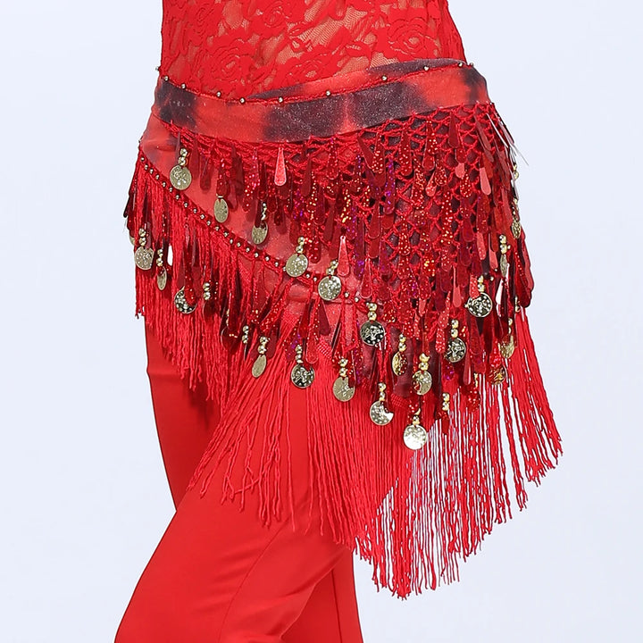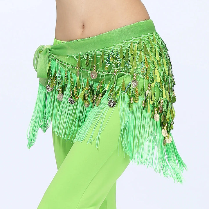 Belly Dance Clothing Accessories Tassel Wrap Stretchy Mesh Base Women Bellydance Belts Fringes Hip Scarf