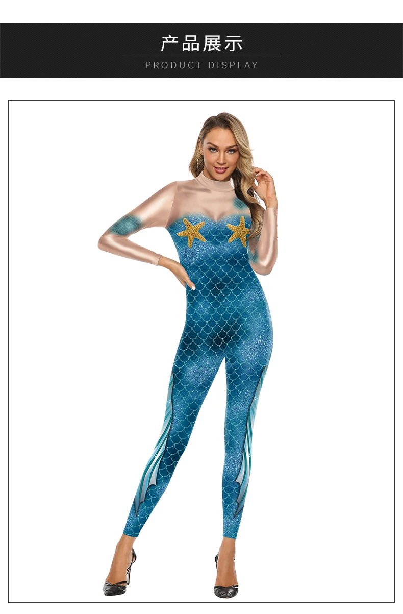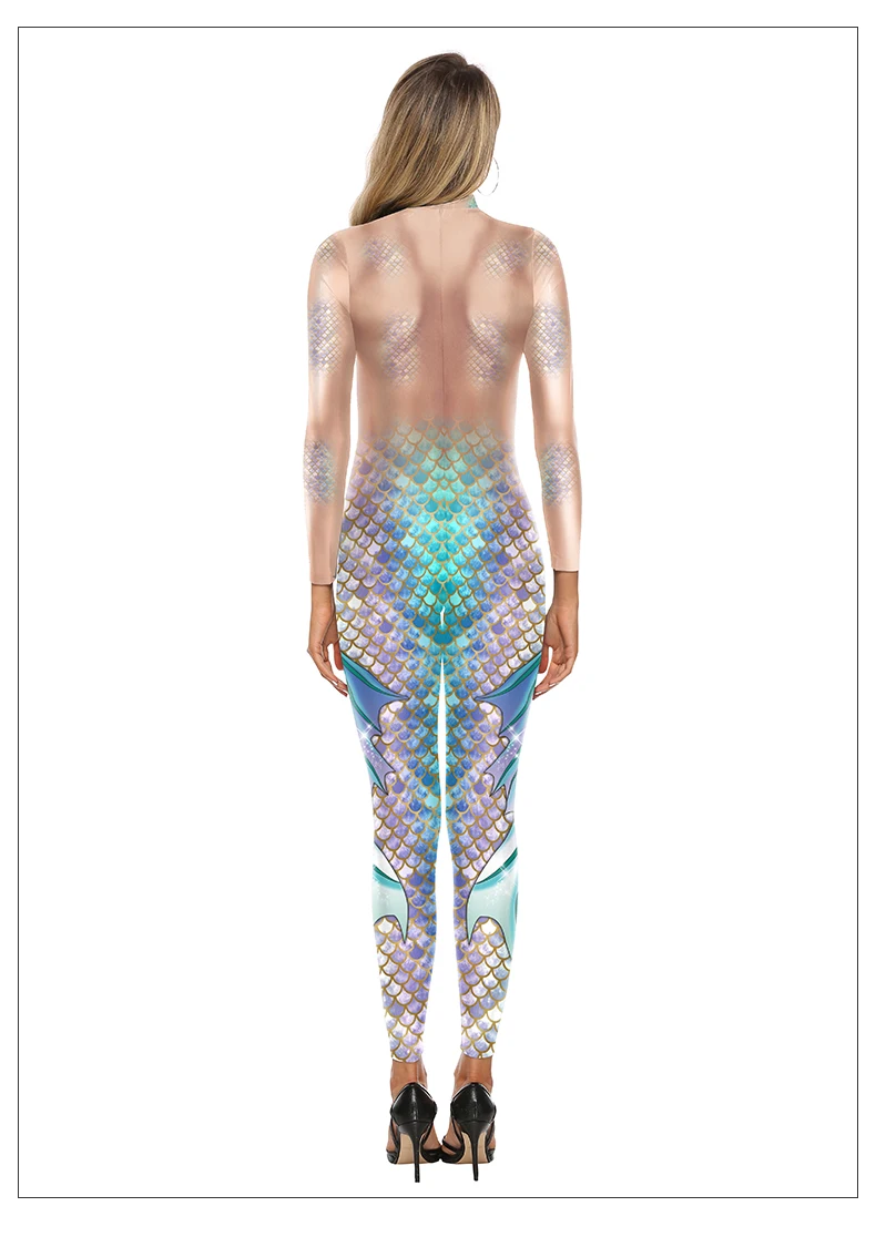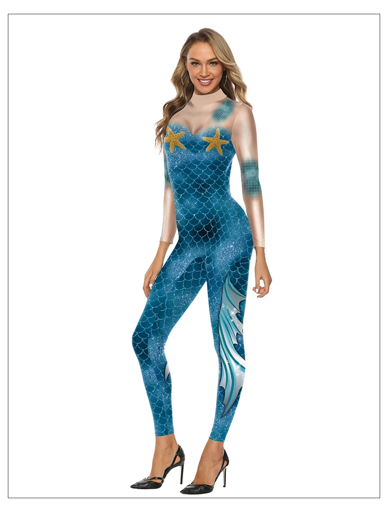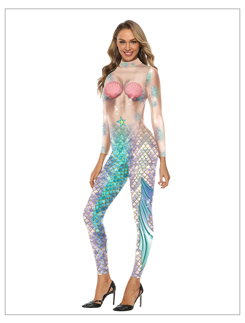 Cosplay Meerjungfrau Sexy Bodysuit Cosplay Elastische Enge Weibliche 3D Gedruckte Langarm Schlanke Karneval Overalls Kostüm