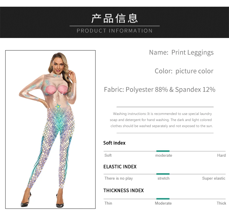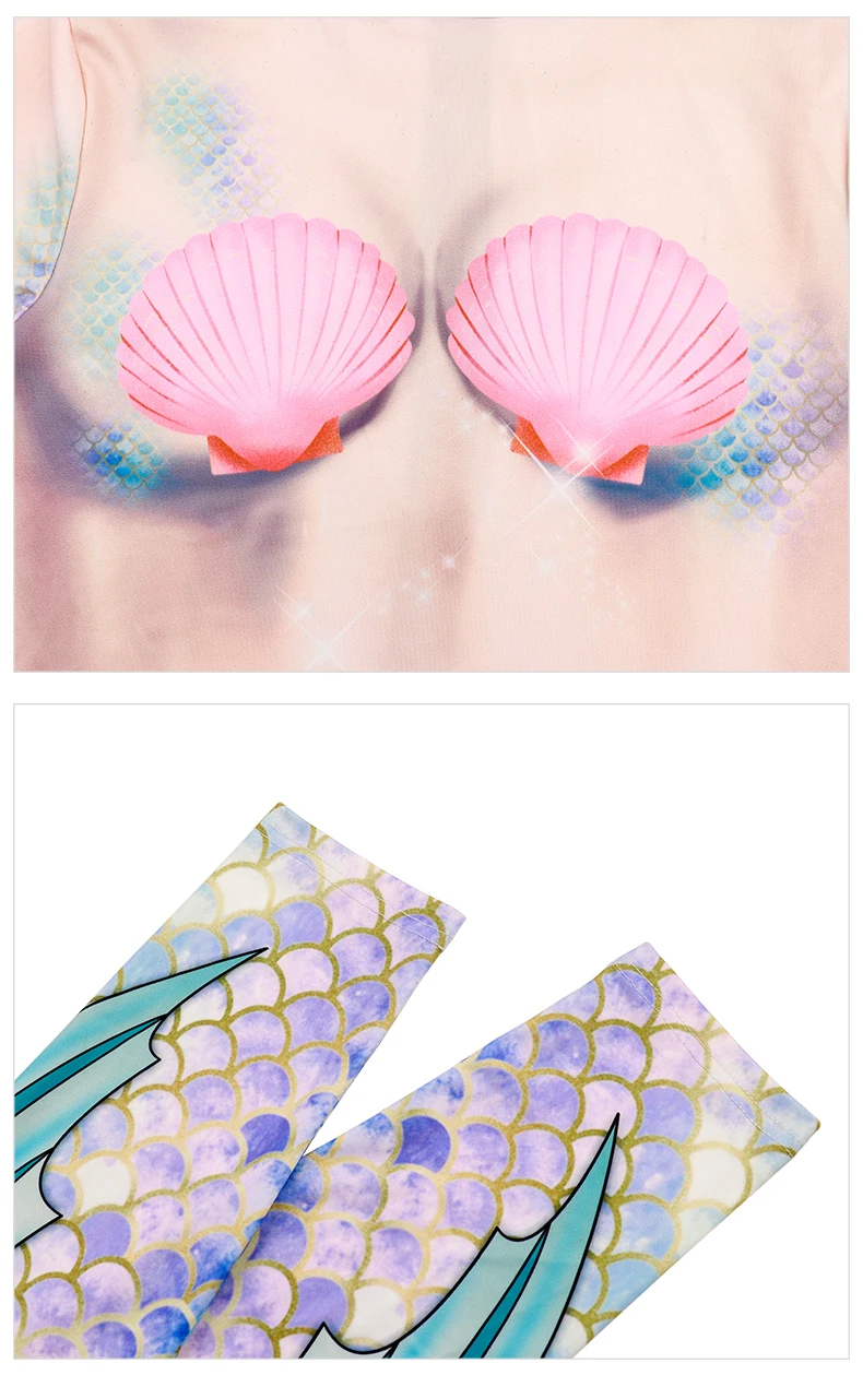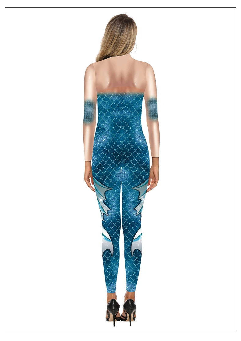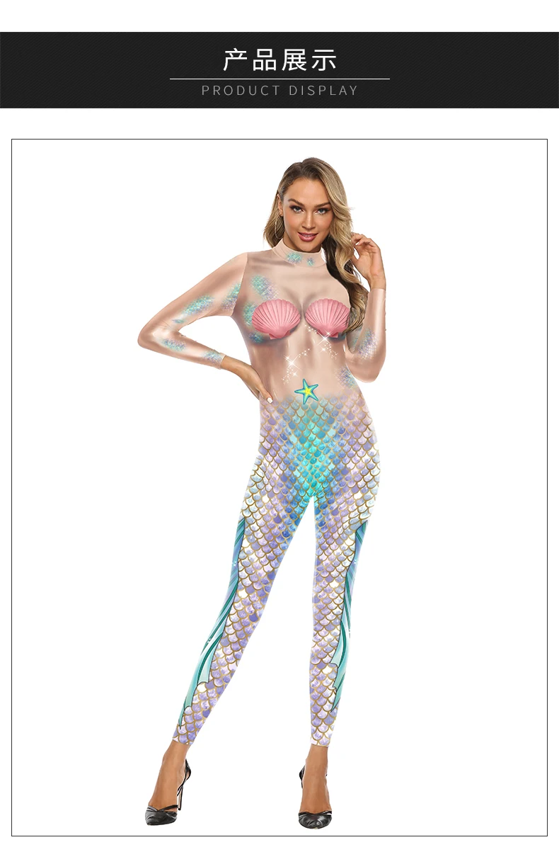 Cosplay Meerjungfrau Sexy Bodysuit Cosplay Elastische Enge Weibliche 3D Gedruckte Langarm Schlanke Karneval Overalls Kostüm