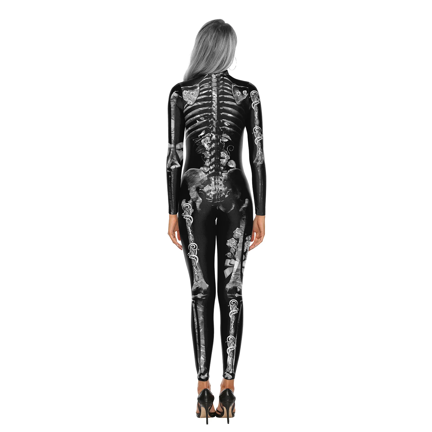 Cosplay Skeleton Rose 3D-gedruckter Bodysuit für Erwachsene, Langarm, Cosplay, elastisch, Karneval, Halloween, Party, Overall, Kostüm