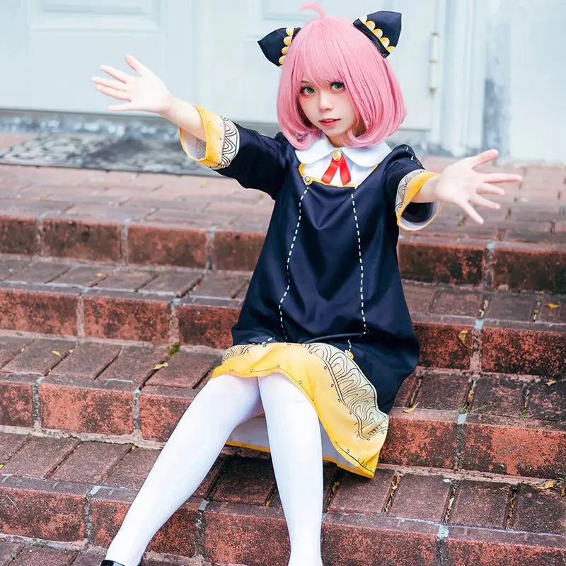 Ausgefallene Kinder Erwachsene Anime SPY X FAMILY Anya Forger Cosplay Kostüm Schwarzes Kleid Uniform Full Set Strumpf Halloween Karneval Kleidung