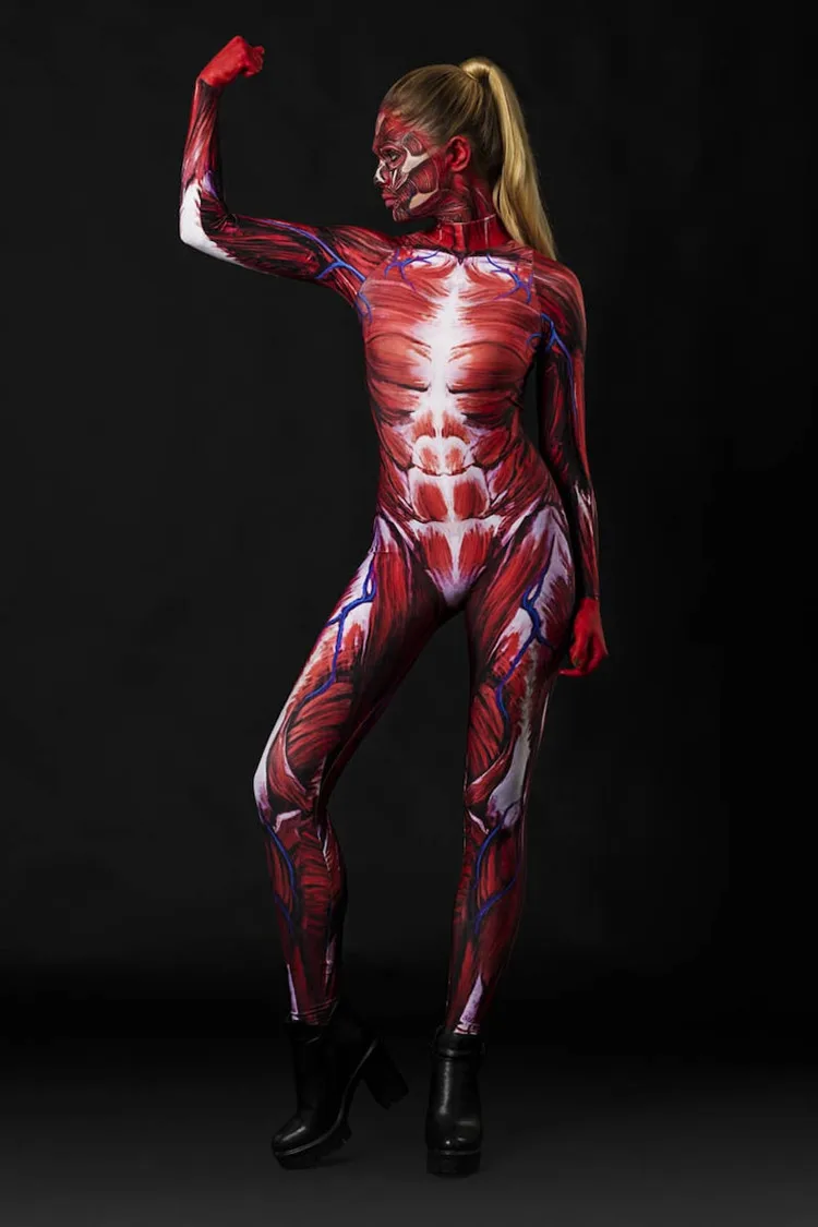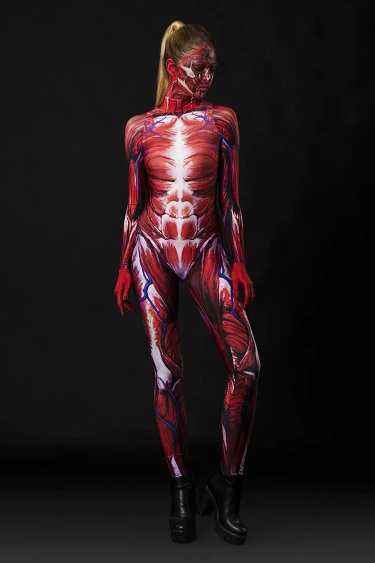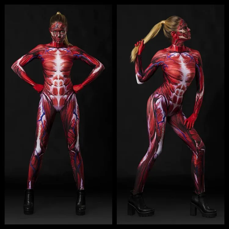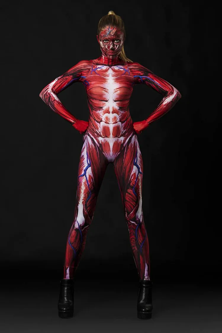 Halloween Cosplay Kostüm für Erwachsene New 3D Digital Print Red Skeleton One-Piece Bodysuit Damen Zentai Catsuit Jumpsuit Outfits