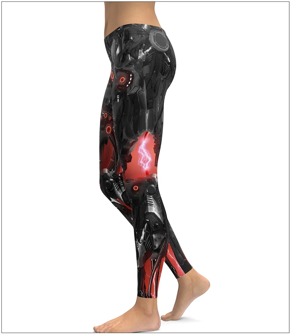 Hohe Taille Hip-Lift Fitness Leggings Frauen Sexy Enge Knöchellange Hose Roboter 3D Gedruckte Leggings Mode Retro Skinny Pants