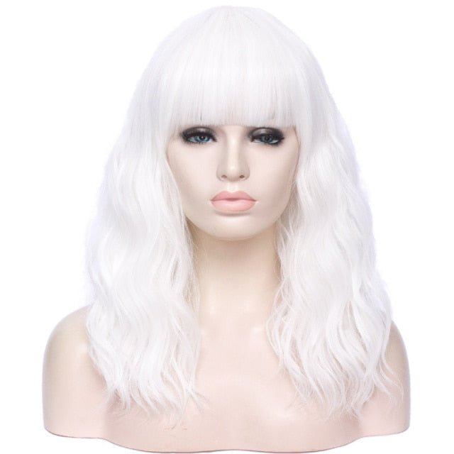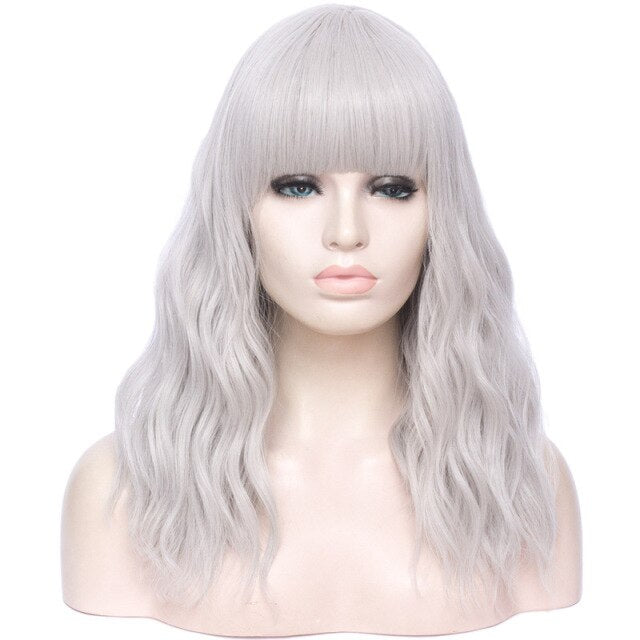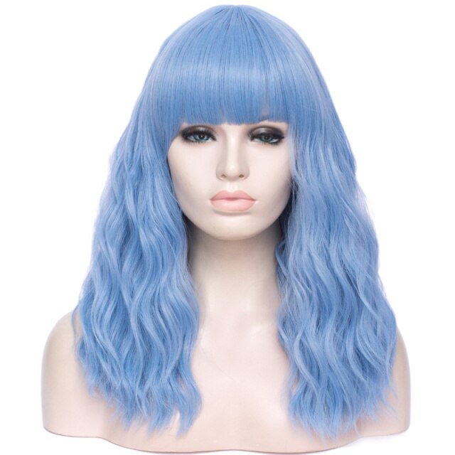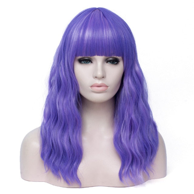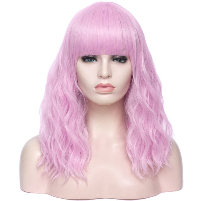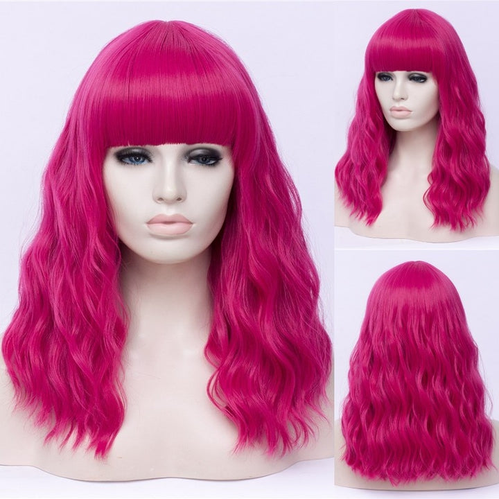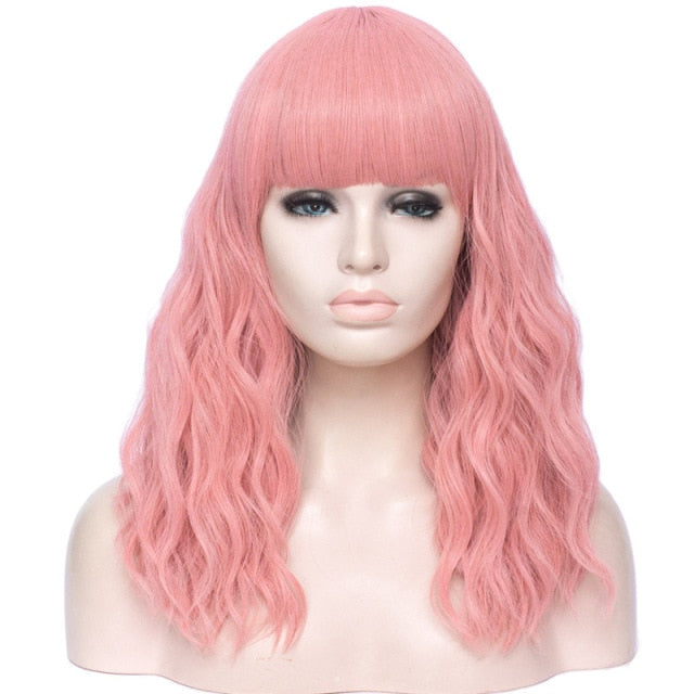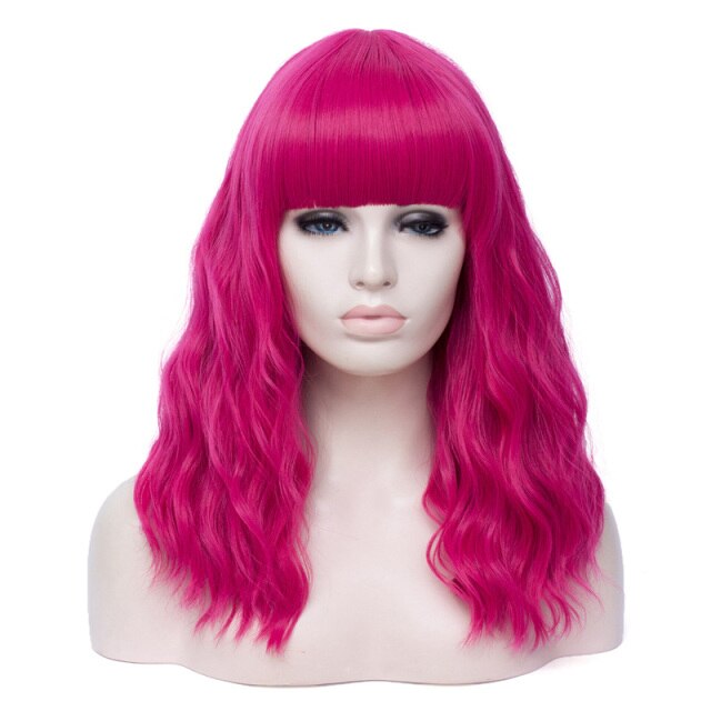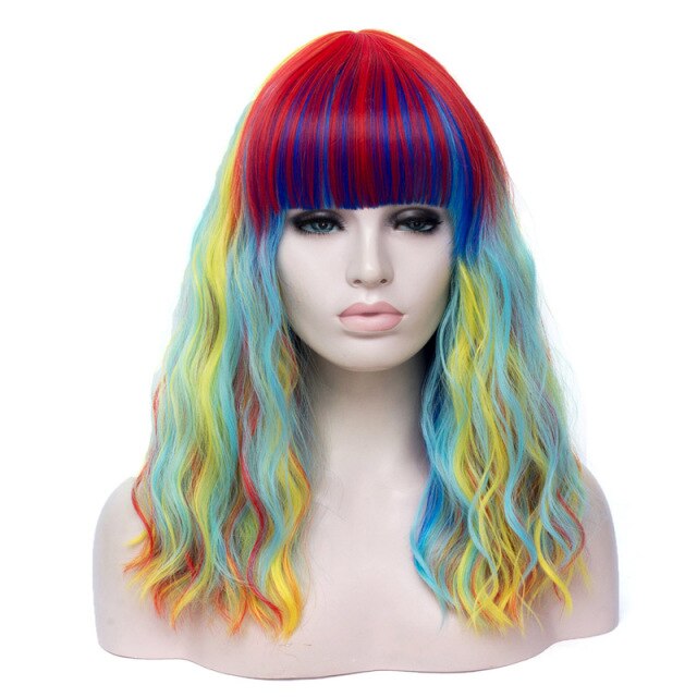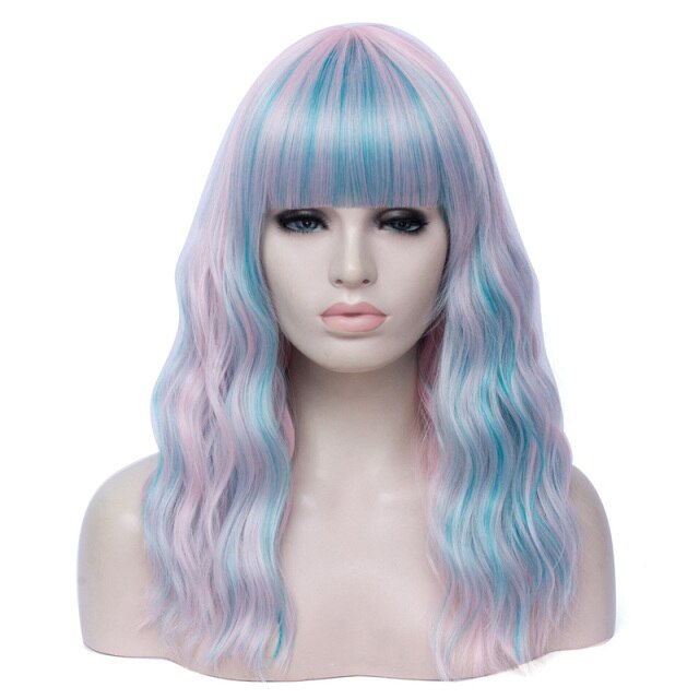 Lange Kunsthaarperücken für Frauen, Cosplay-Perücken mit Cut Bang, hitzebeständigem Pink Rainbow Ombre