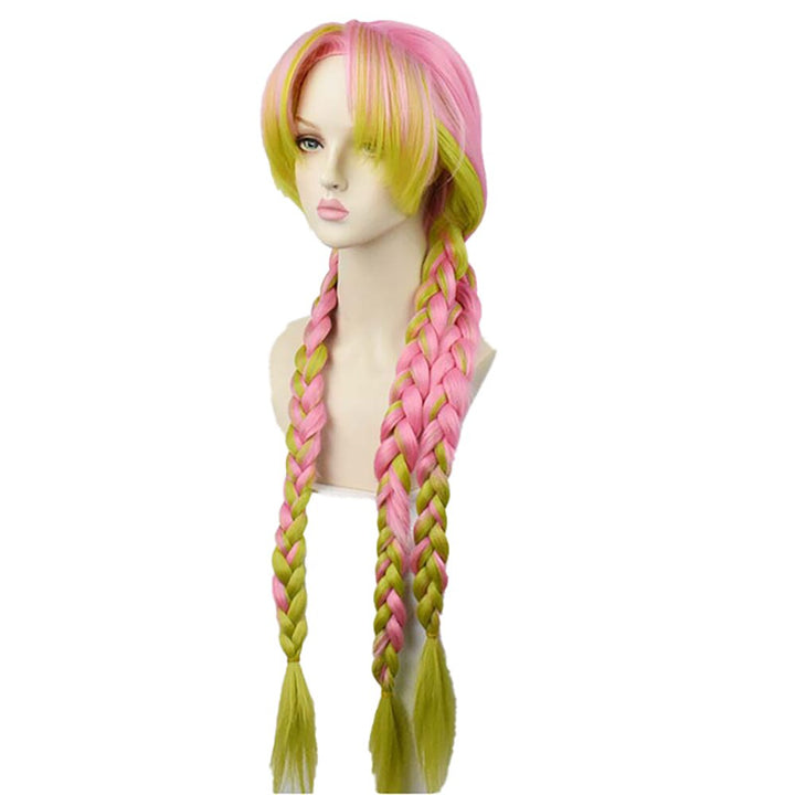Mitsuriri Kanrojiji Cosplay Wig Demons S Slayers Anime Hair Colorful Double Ponytail Braid Halloween Japanese Cartoon Cosplay Gifts