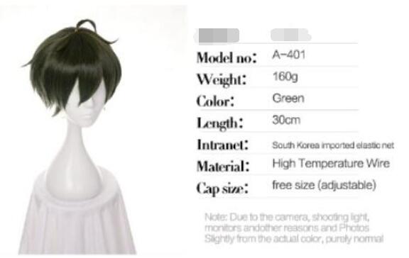 12" THE ANIMATIONon Gothics Men Short Green Synthetic Hair Cosplay Wig Heat Resistance Party Wigs