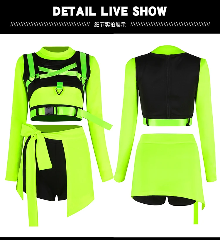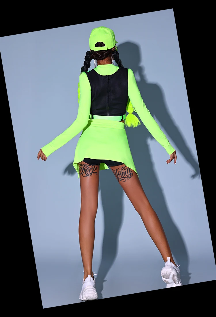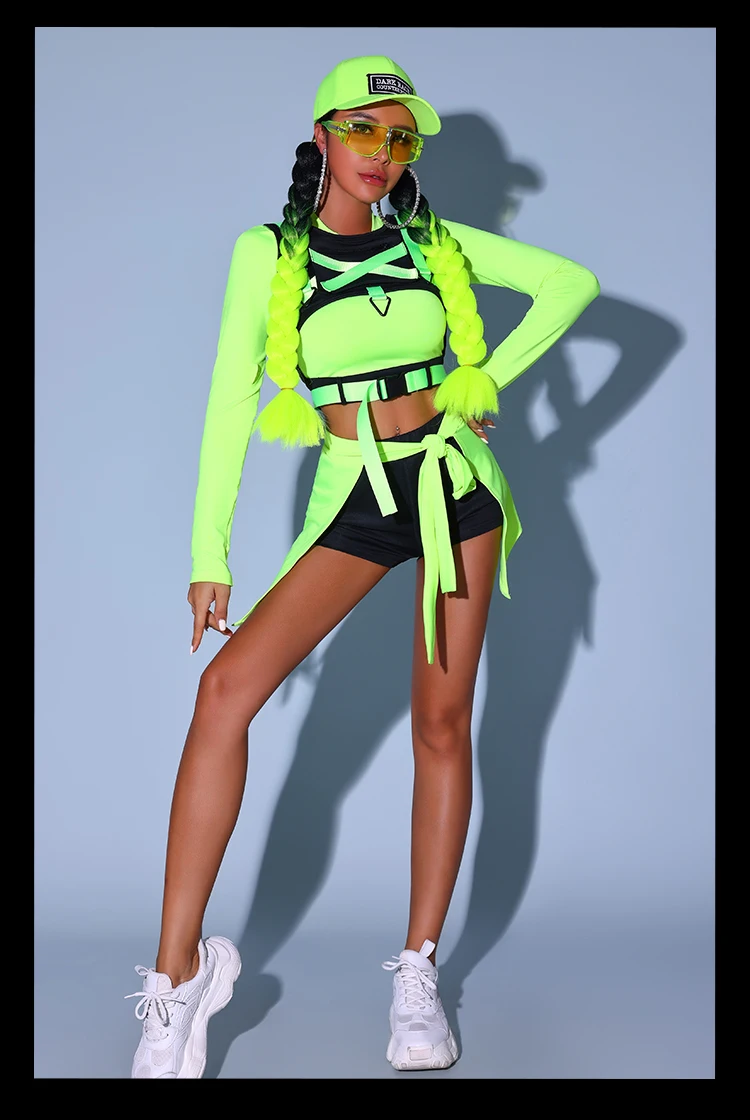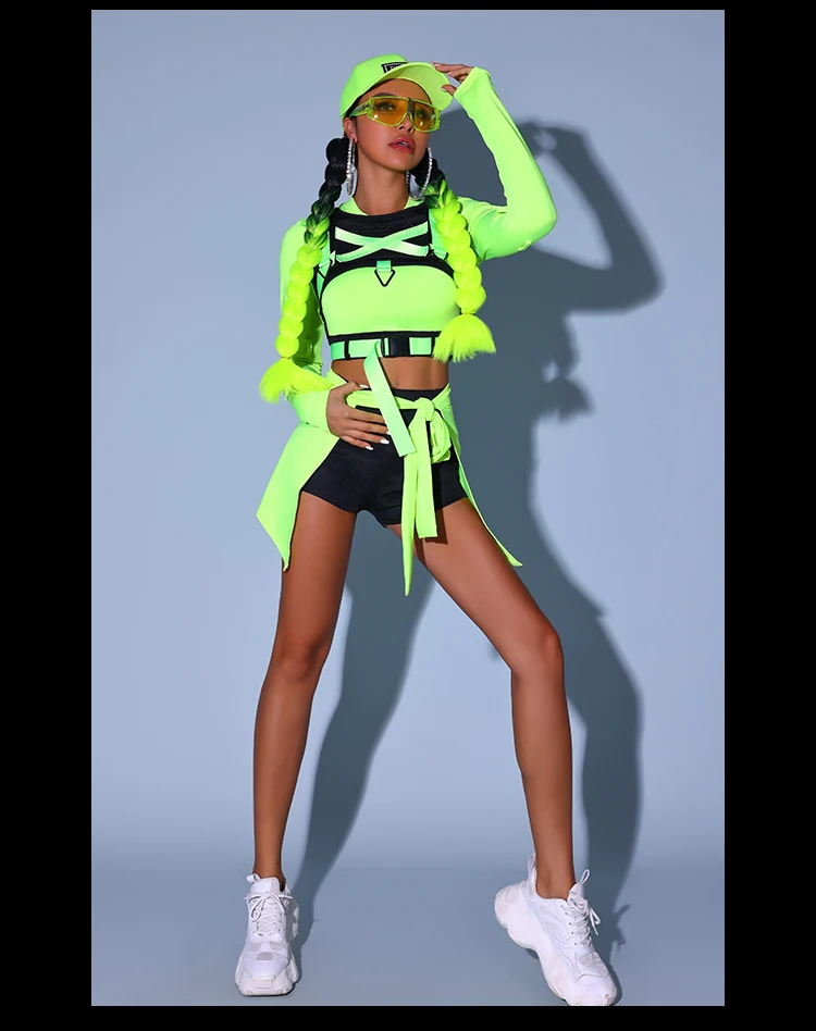 Fluorescent Green Hip Hop Clothes Adult Women Kpop Jazz Dance Costume Gogo Dancer Performance Wear Party Rave Outfit DL10964