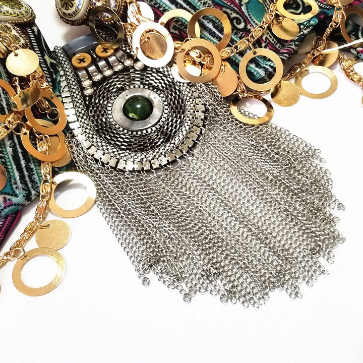 Tribal Bellydance Clothing Coin Antique Gold Metallic Chain Tassels C/D CUP Vintage Gypsy Belly Dance Coins Bra