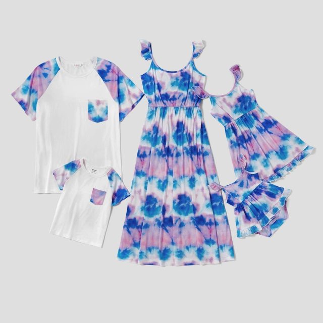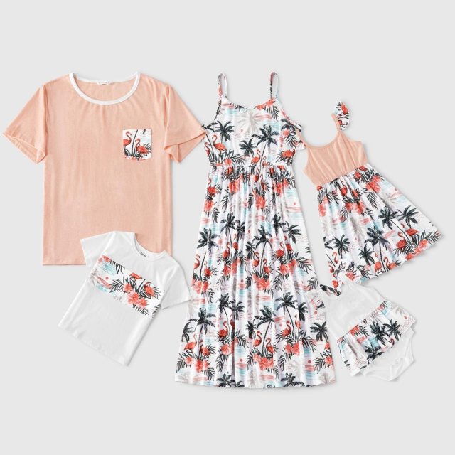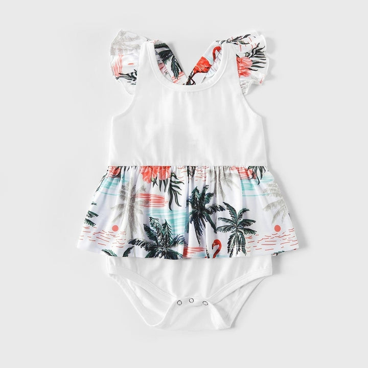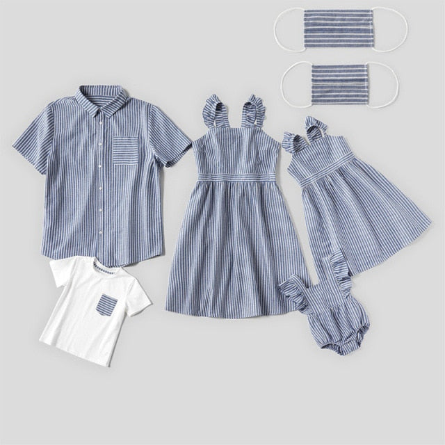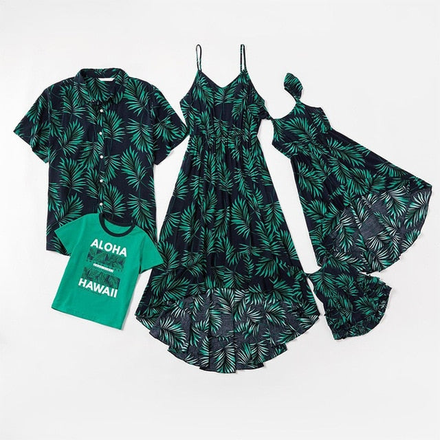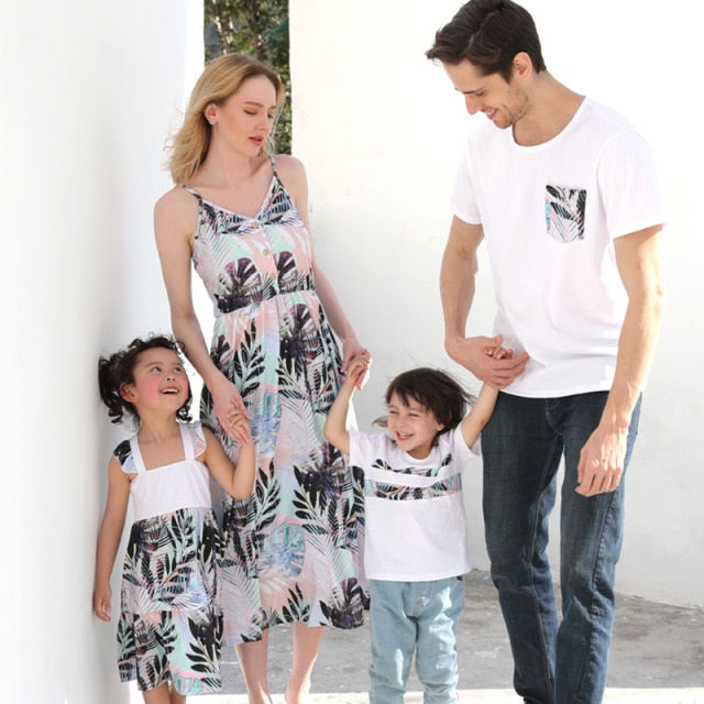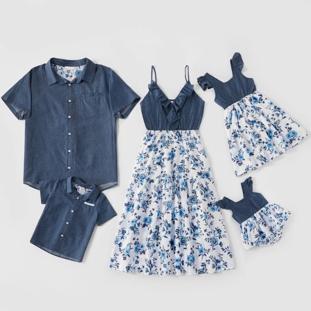 Summer Cotton Mom Dad Daughter Baby Family Clothes Flower Printed Ruffles Short Sleeve Cotton Shirt Dress Rompers Outfits