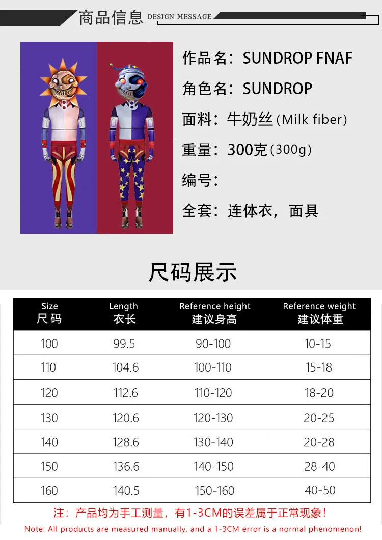 Sun drop Halloween Moon Sun Final Leader Cosplay Onesie Tits Security Breakdown Clown Puppet Cosplay Birthday Party Costume Fnaf