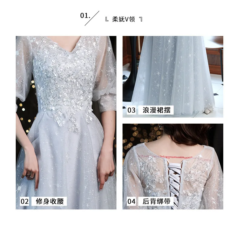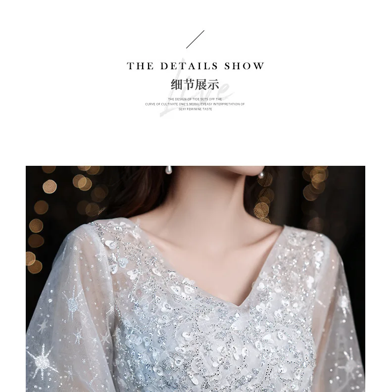 V-neck Elegant Temperament Puff Sleeve Wedding Party Vestidos Slim Waist Expose Clavicle Prom Dress Simple Evening Dresses