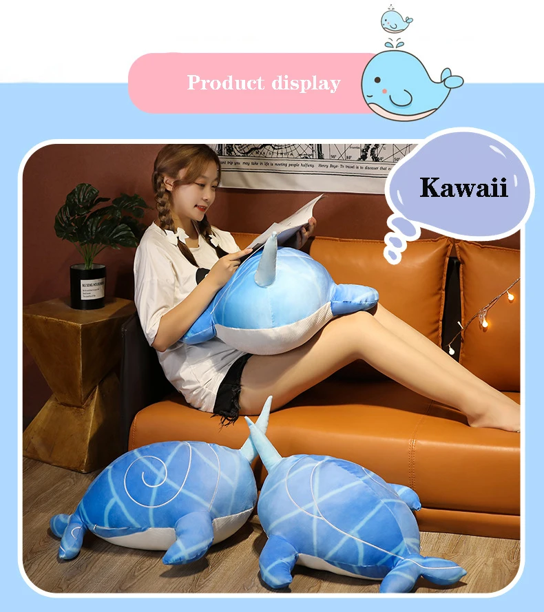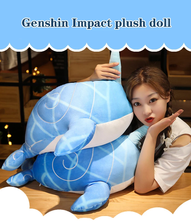 90/50cm Game GenshinImpact Plushie Plush Toy Kawaii Cartoon Blue Whale Mascot Cosplay Props DIY Party Sofa Pillow Surprise Gift
