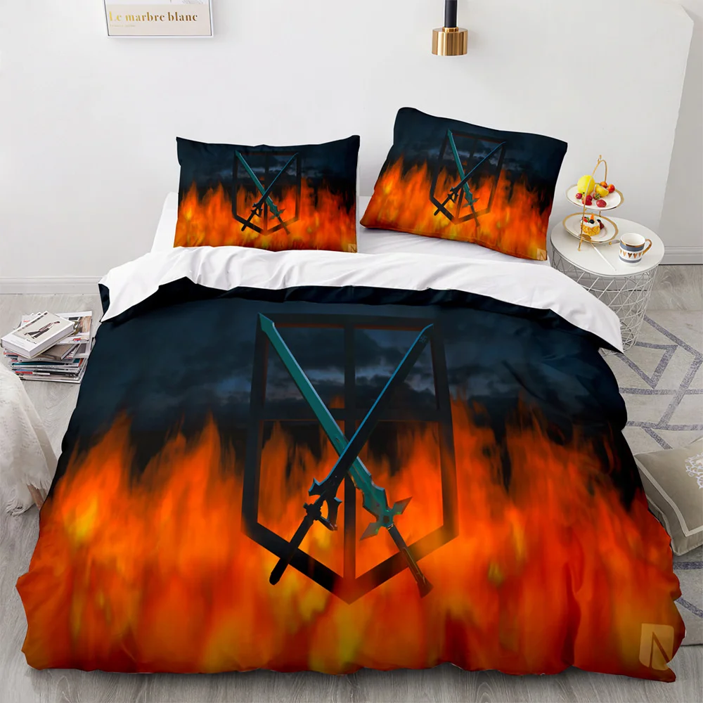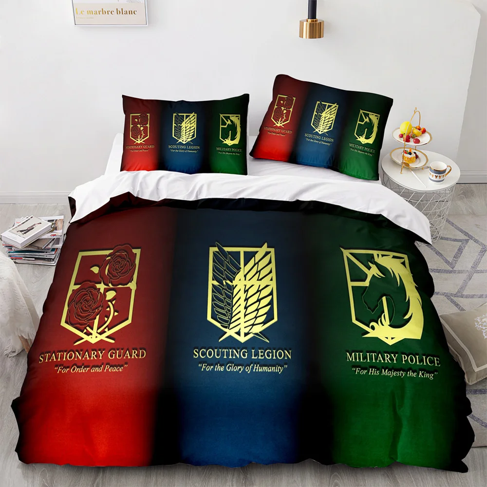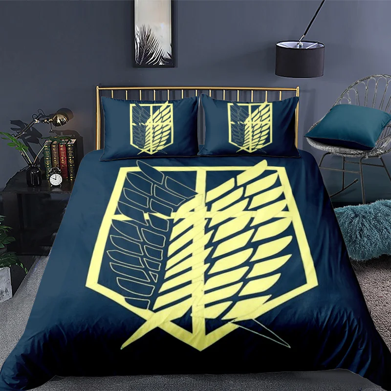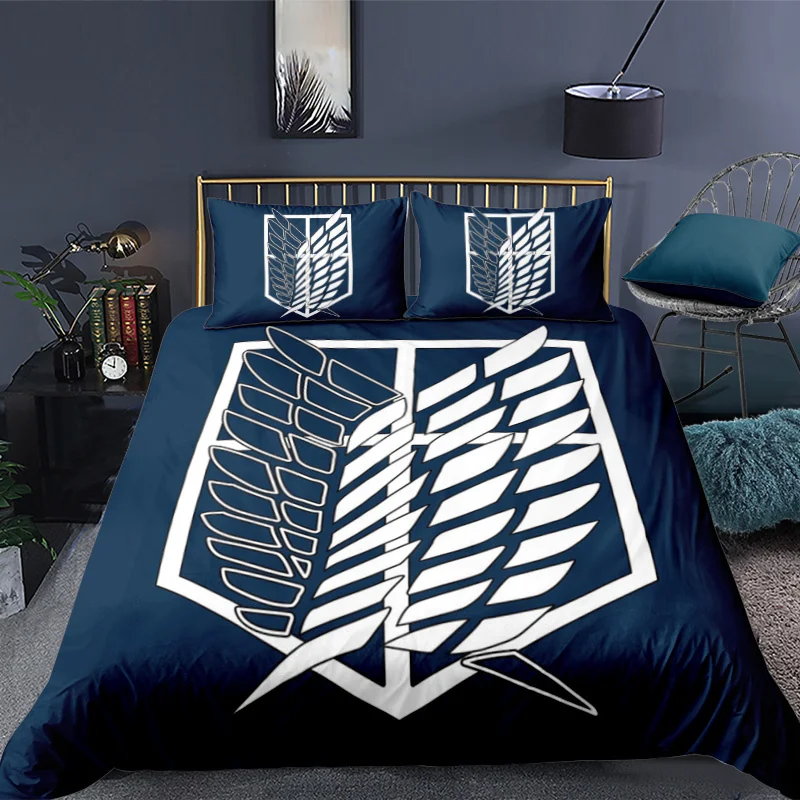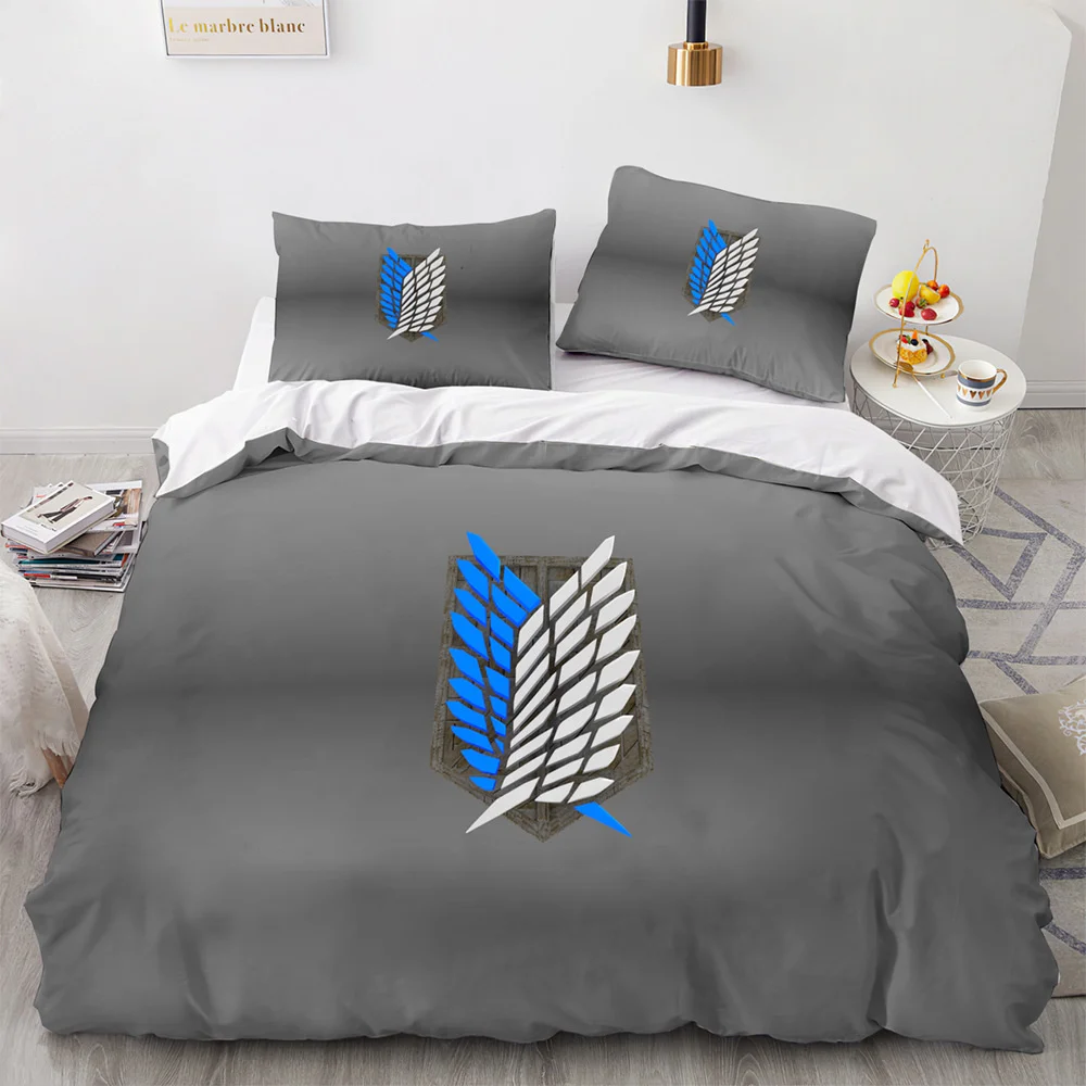 Attack Anime Titan 3D Printed Bedding Set Duvet Cover Pillowcase Freedom Wings Bedclothes for Boys Kids Twin Single Full Size