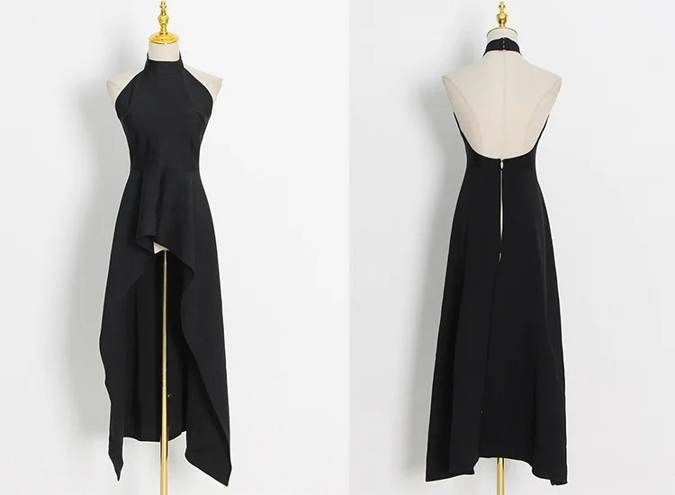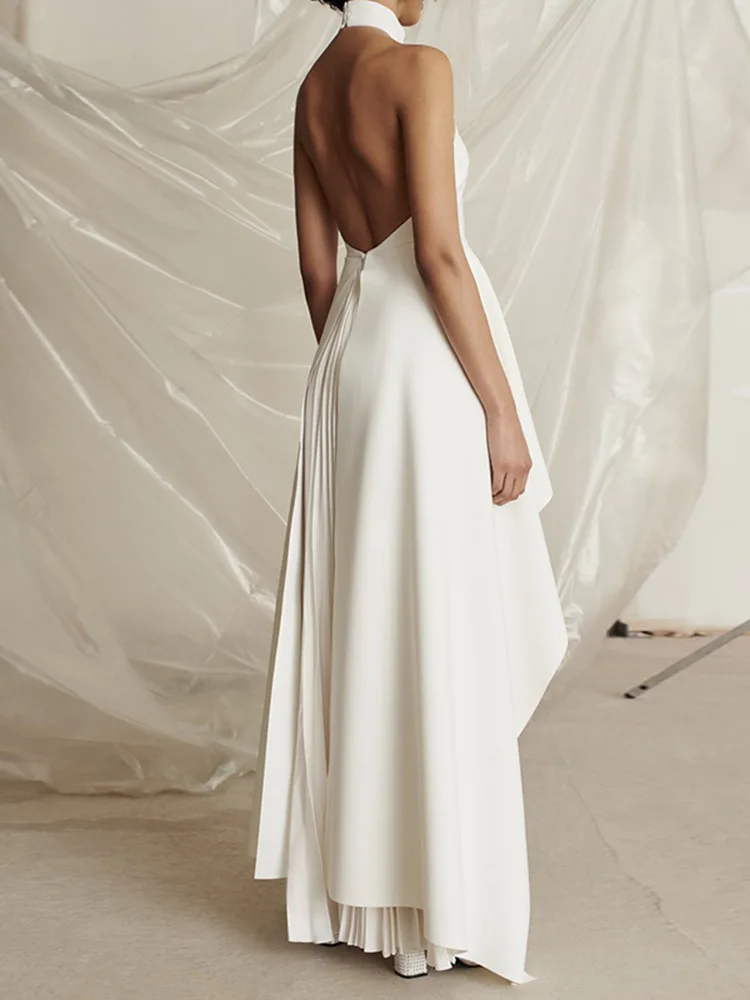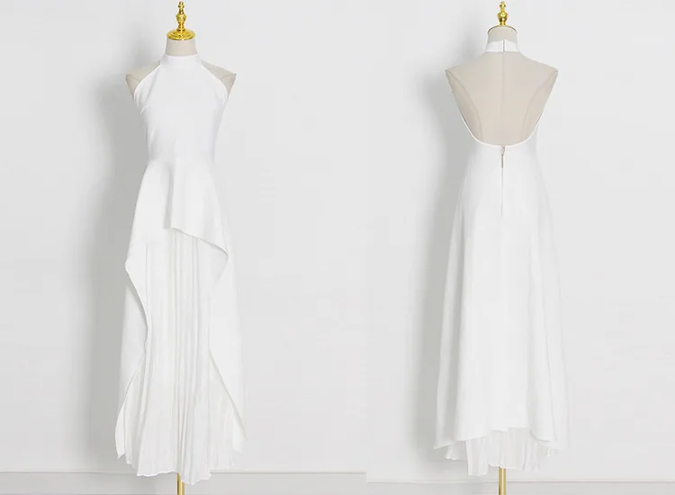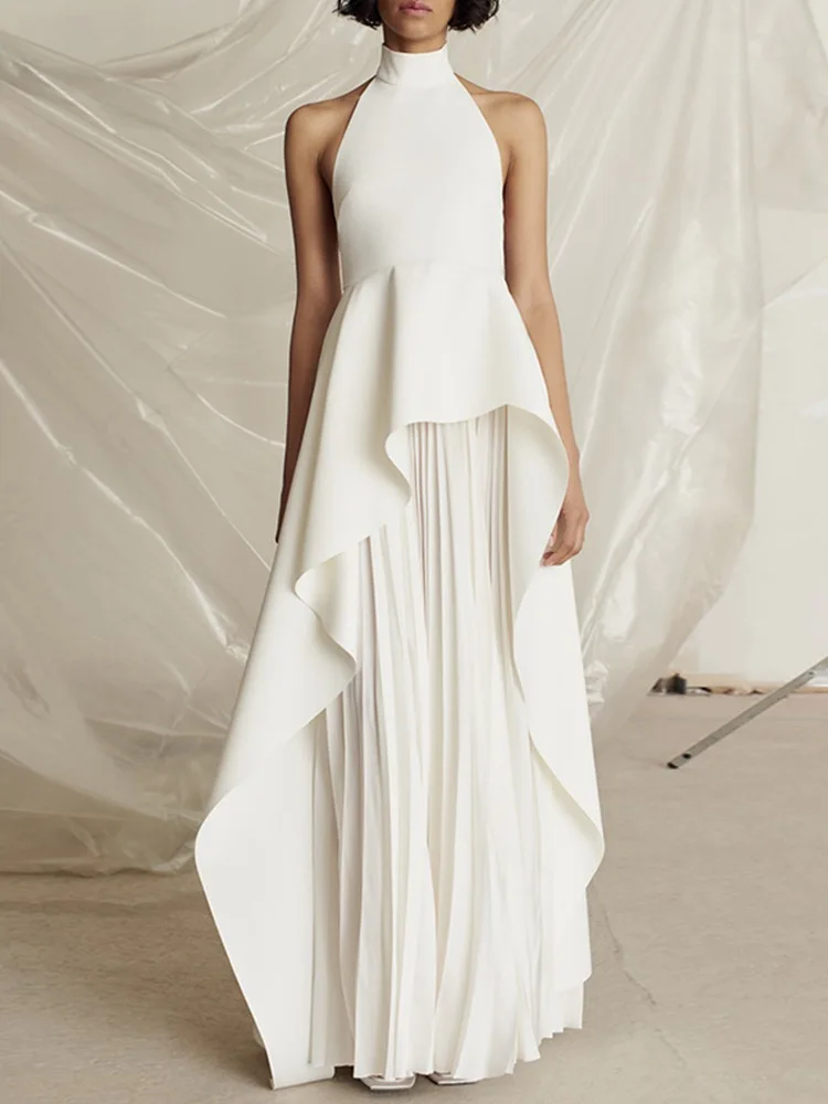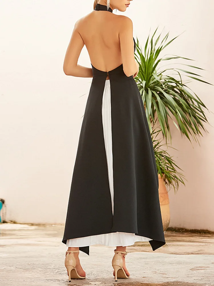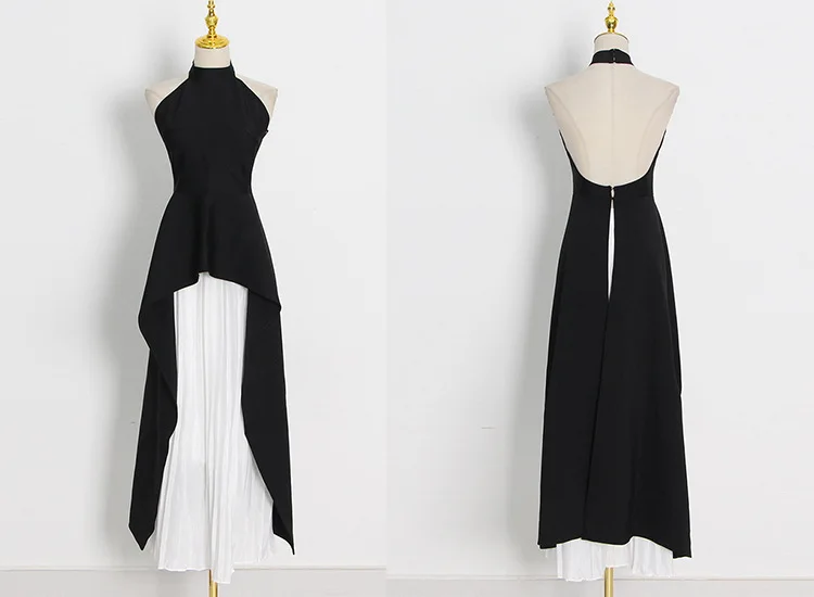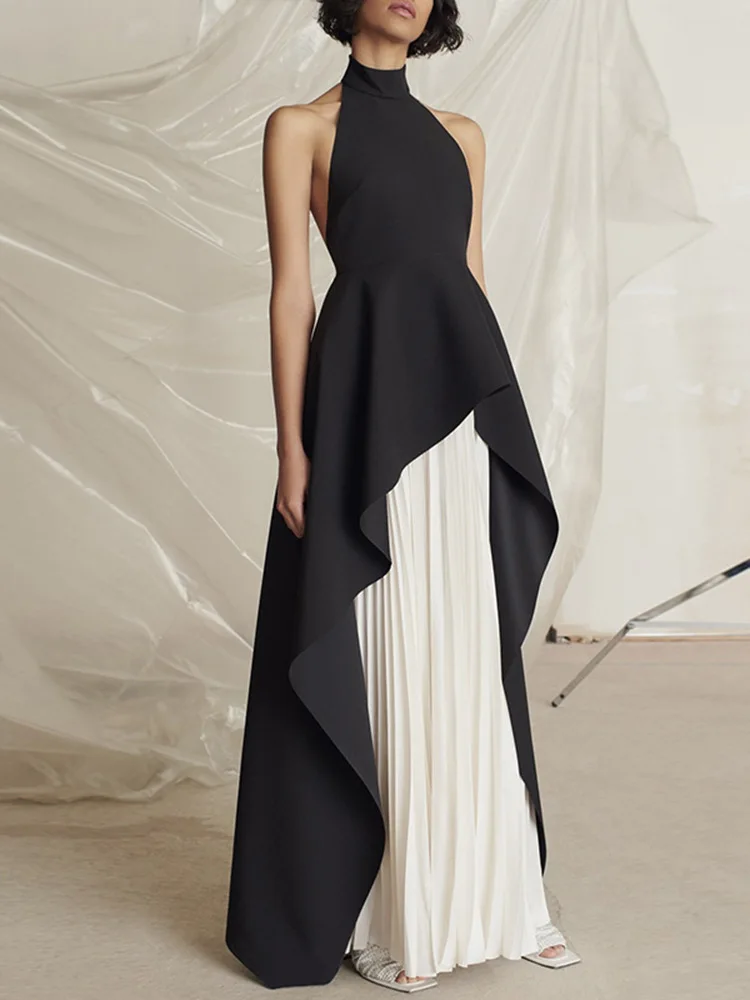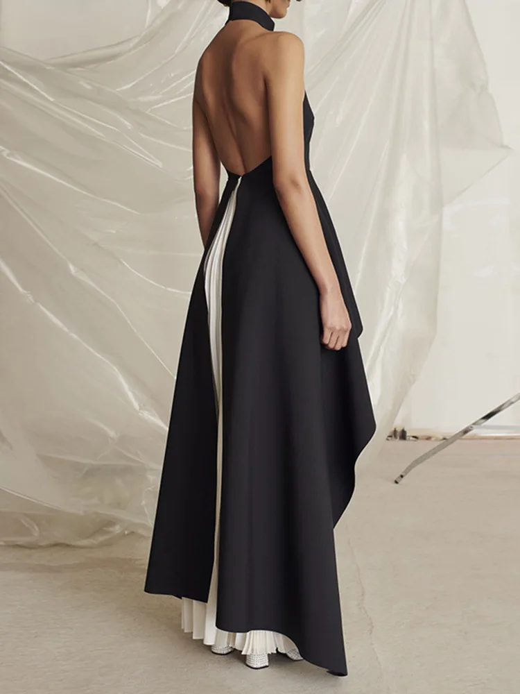 French Hanging Neck Evening Dress Pleated Elegant Luxury Black and White Contrast Color Prom Robe Long Wedding Party Dresses
