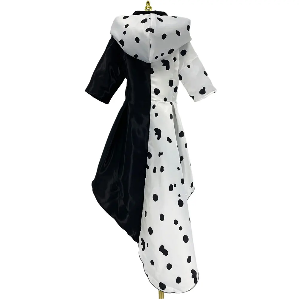 Girls Women Black White Cosplay Costume Dress Follower Black Uniform Cruellala Devillele Dresses Coat Halloween Skirt