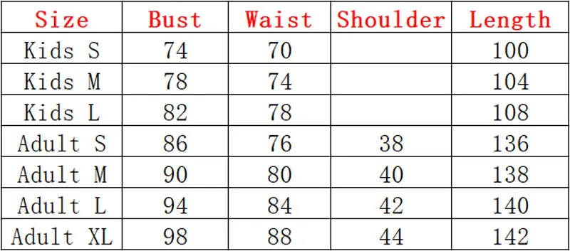 As all of our costume is hand-sewn, the finished costume may vary by approximately one (1-2) inch in either direction of the specified measurements.