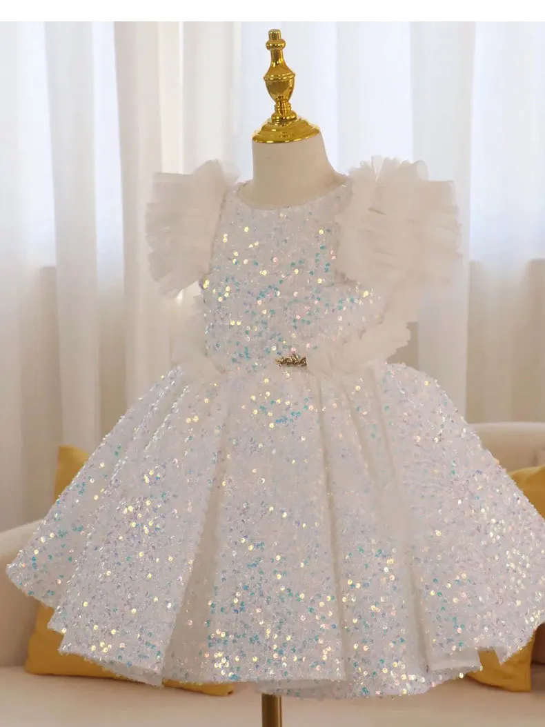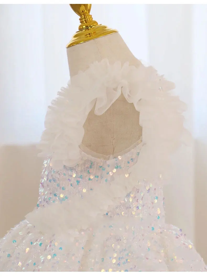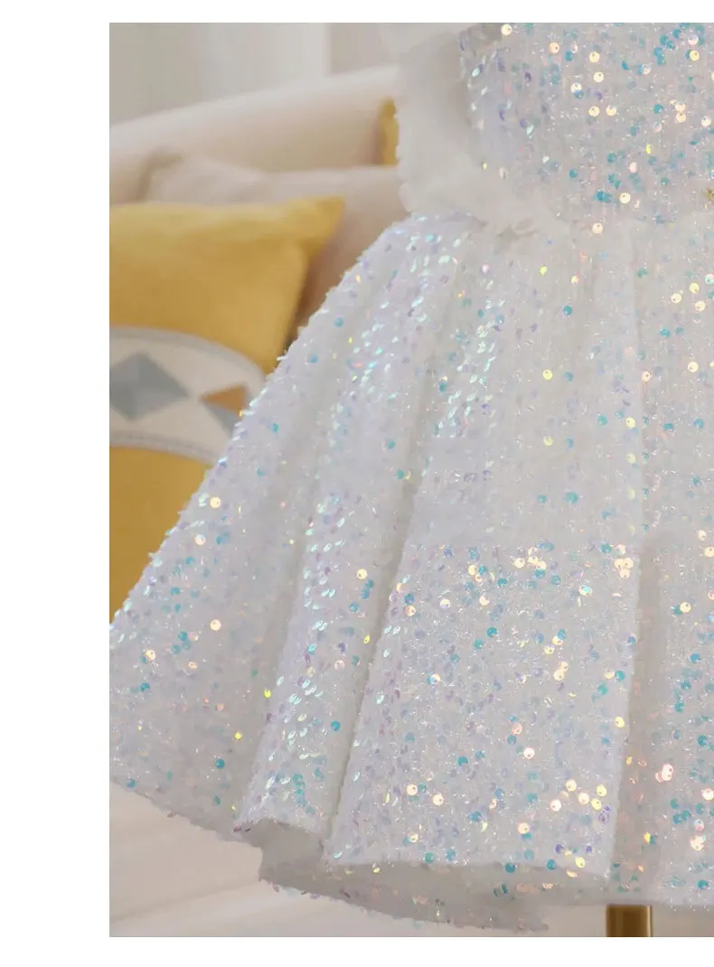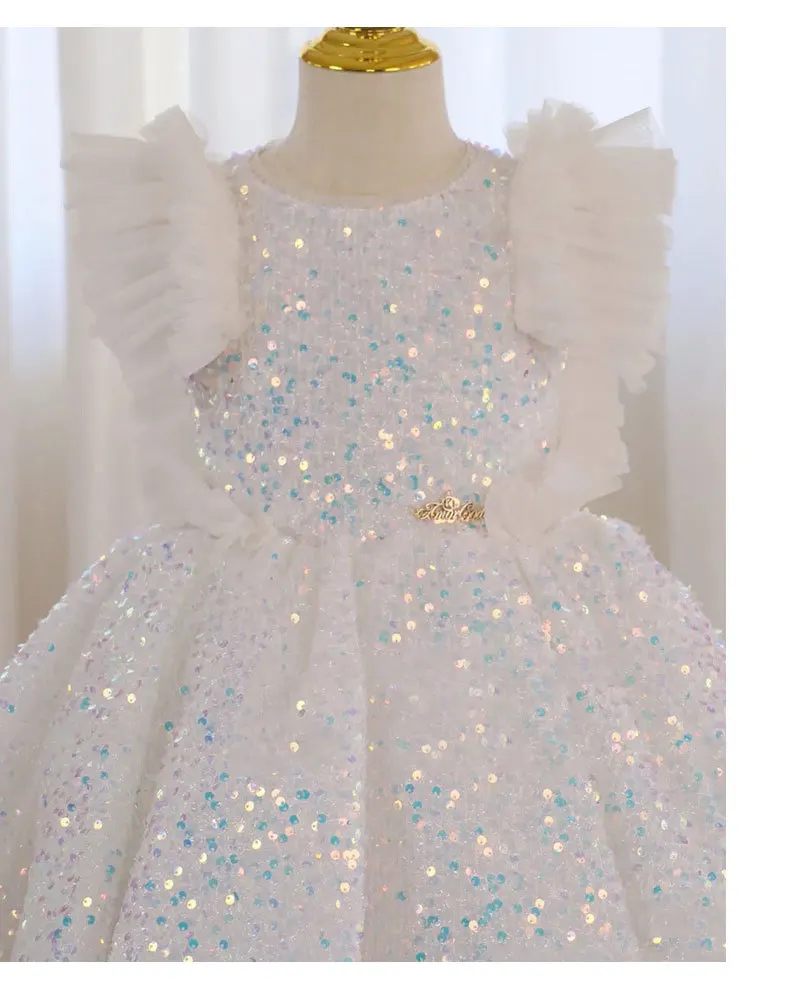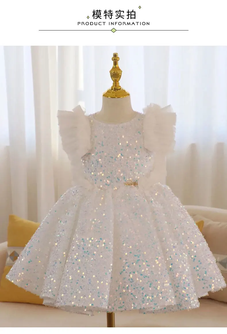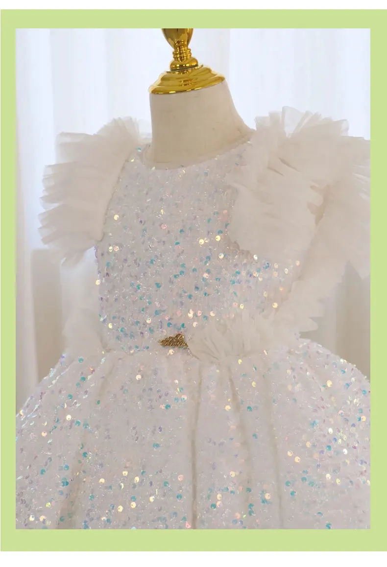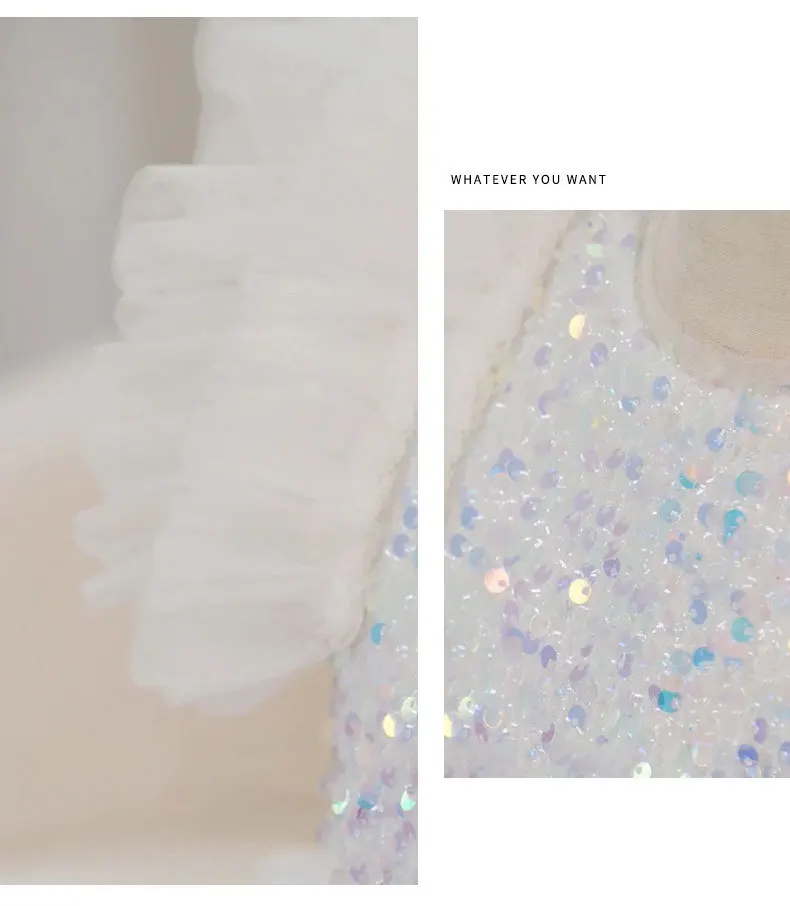 Sequined Sleeveless Pleated Mesh Design Girls Birthday Dress Elegant Ball Gown Princess Vestidos 2024 Summer Flower Girl Dresses