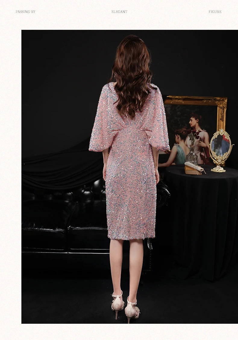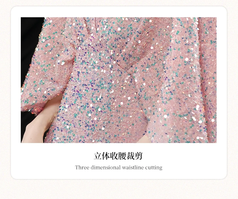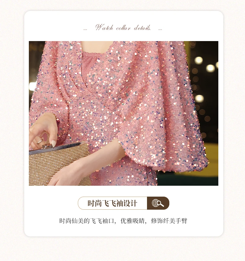 Sequined V-neck Flared Sleeve Evening Dresses Slim Waist Elegant Dress Women for Wedding Party 2024 Summer Luxury Short Robe