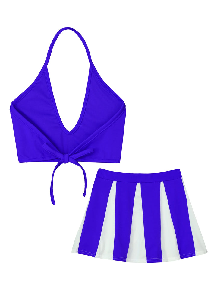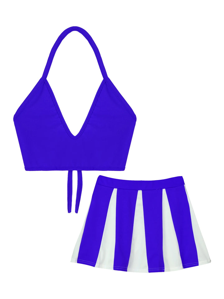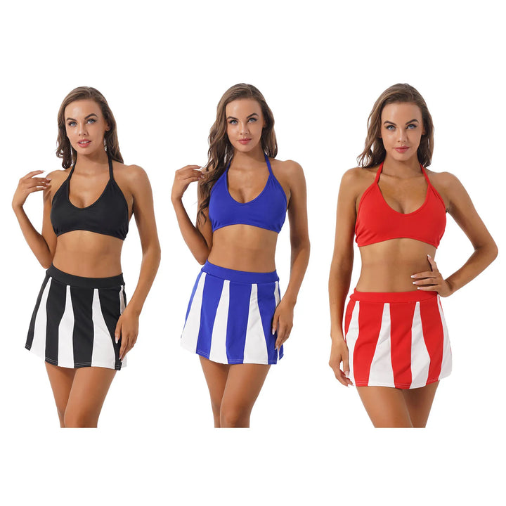 Women Cheerleading Costume Outfits Halter Lace-up Crop Top with Skirt.