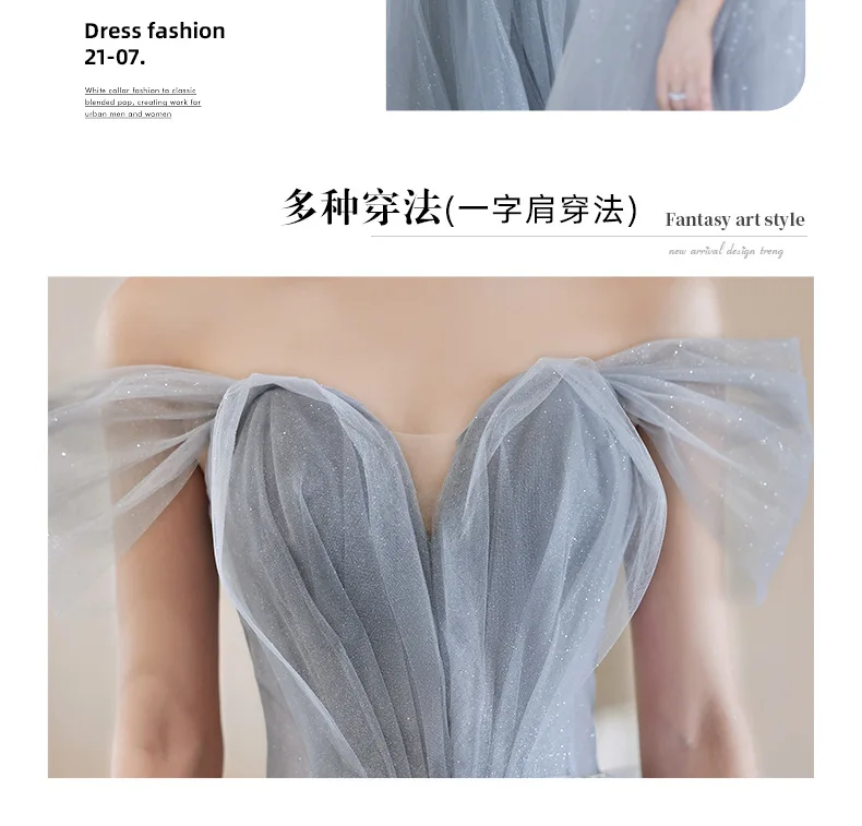 Strapless Mesh Tiered Design Fairy Wedding Party Dress Slim Waist Slash Collar Back Lace Up Prom Robe 2024 Summer Evening Dress