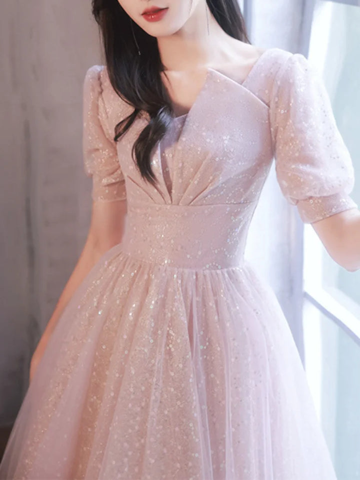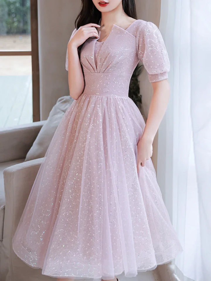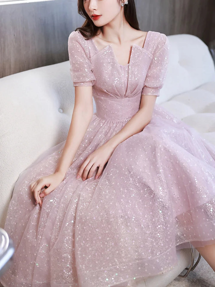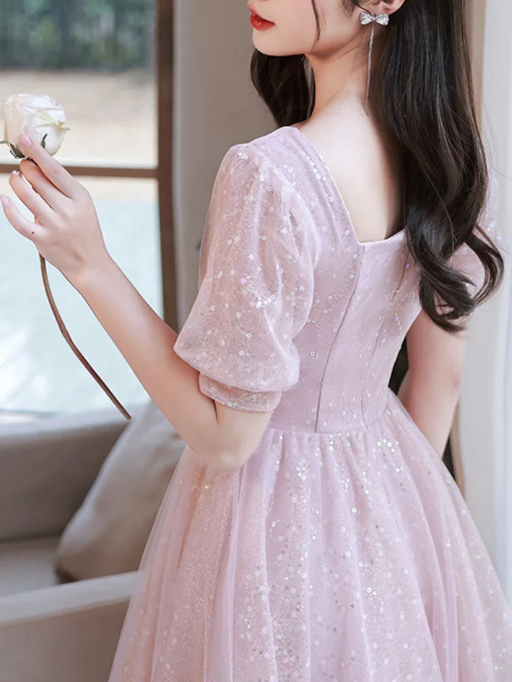 Sweet Simple Temperament Evening Dresses Solid Slim Waist Robe Design Puff Sleeve Prom Robe Square Collar Wedding Party Dress