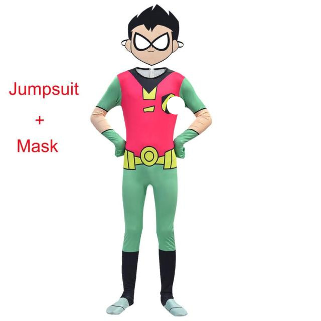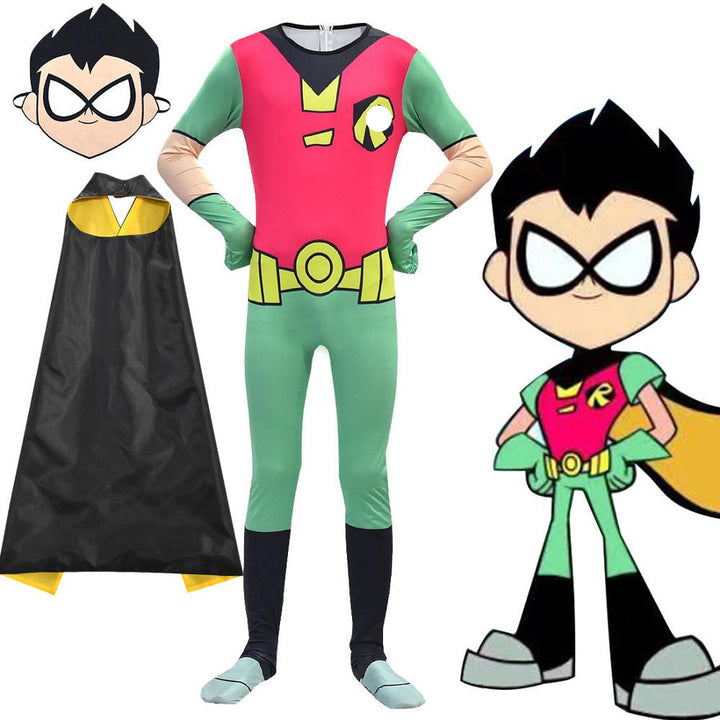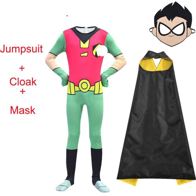 Teen oh Titansns Go Robinin Cosplay Costume 3D Child Jumpsuit Zentai Cloak for Boys Girls