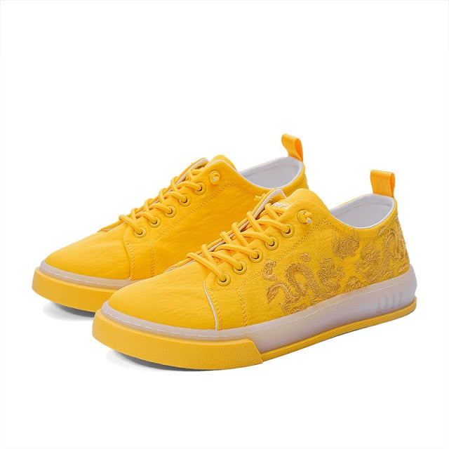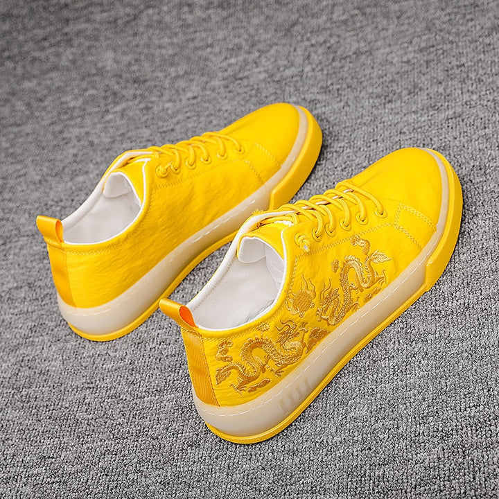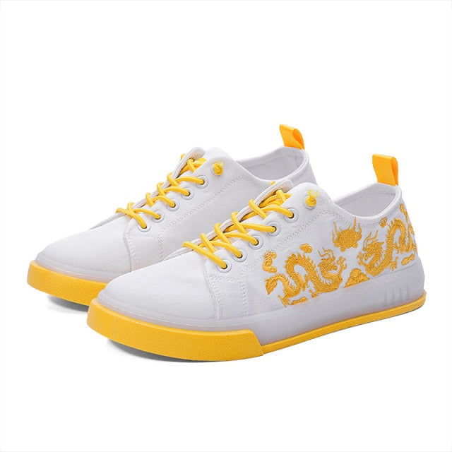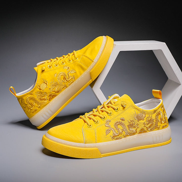 Casual Men Shoes Sneakers Plimsolls Dragon Embroidered Mens Designer Shoes Comfortable China Yellow Sneakers Men Espadrilles