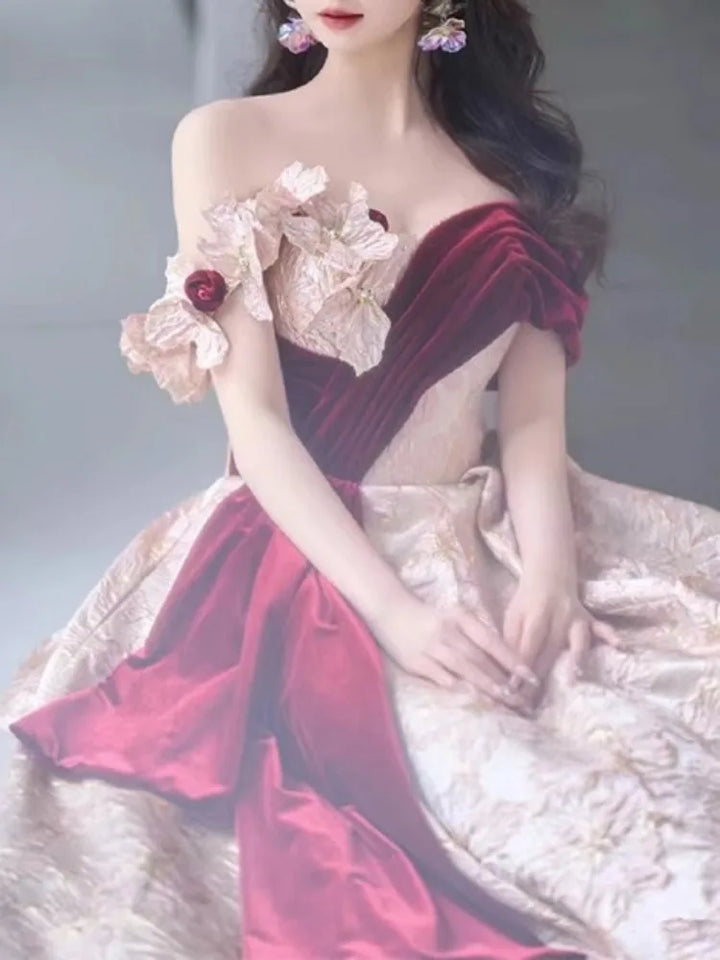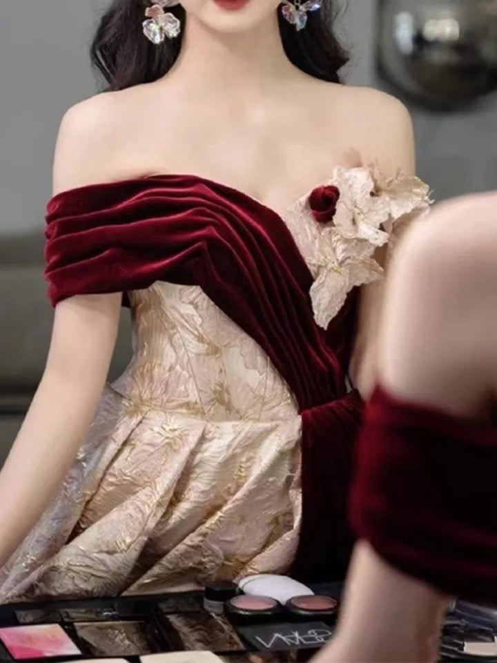 French Slim Waist Temperament Wedding Party Vestidos Strapless One Shoulder Pleated Prom Dress Stain Elegant Evening Dresses