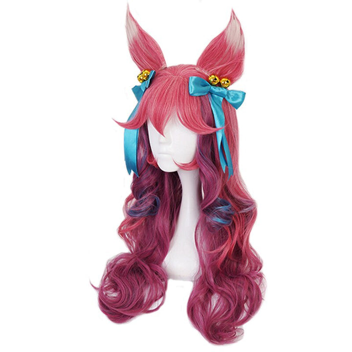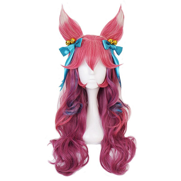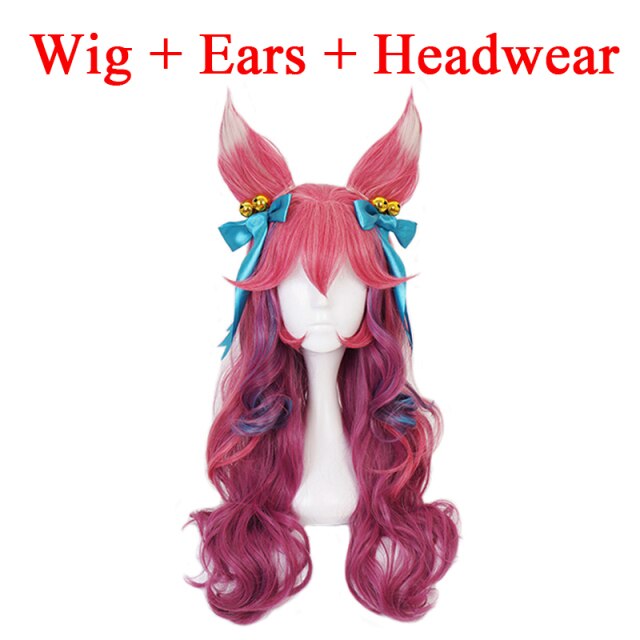 Spiritit Blossomom Ahriri Mixed Color Long Wig With Ears Headwear Cosplay Costume Heat Resistant Hair Women Carnival Party Wigs