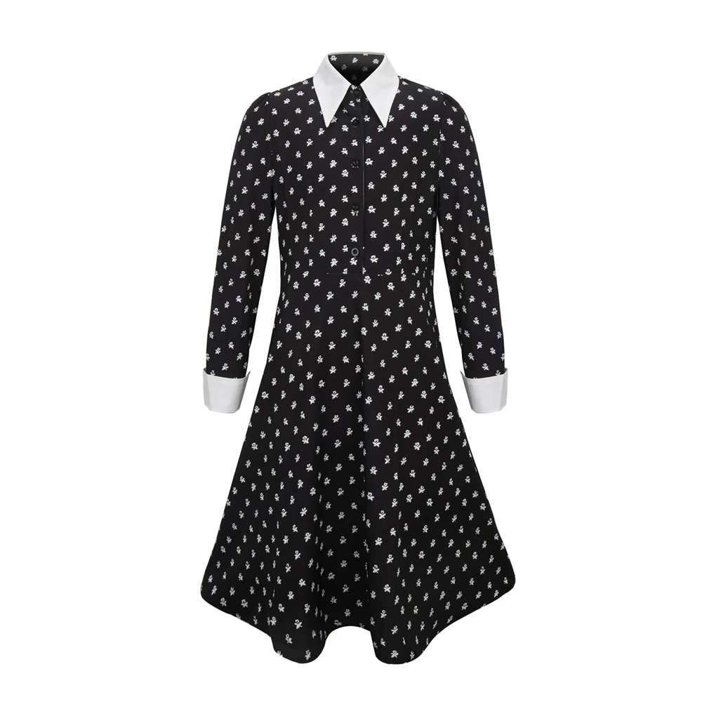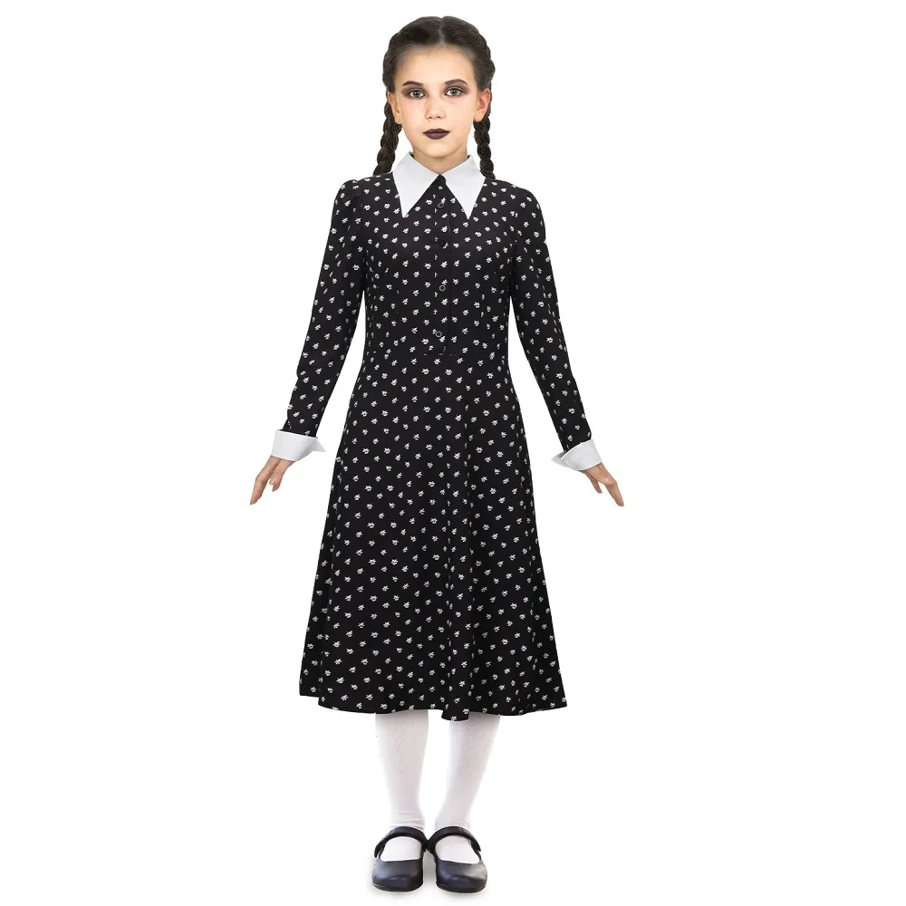 On Wednesdays Dress for Kids Girls Vintage Black Gothic One and Piece Dresses The Addamsms a Family Cosplay Outfits