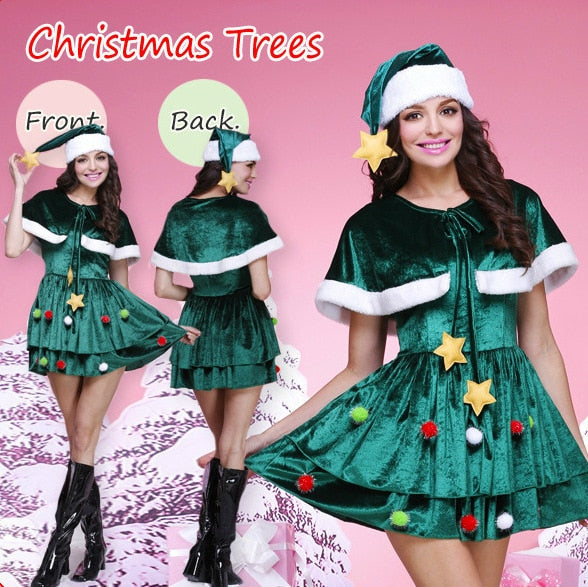 Fashion Cute Christmas Dress Fancy Japanese Korea Holiday Party Dancing Costume Cosplay Adult Women Green Lace Dress