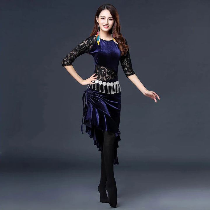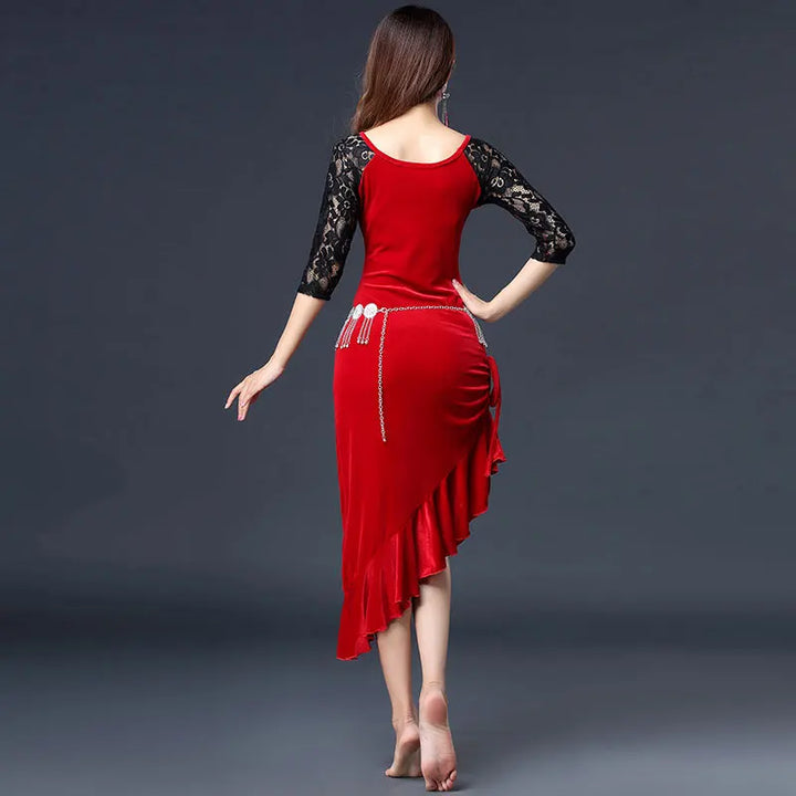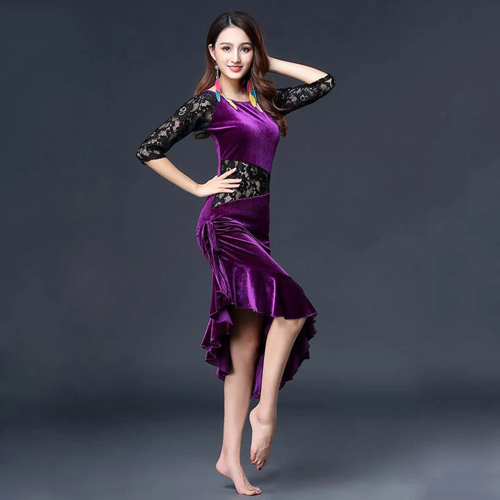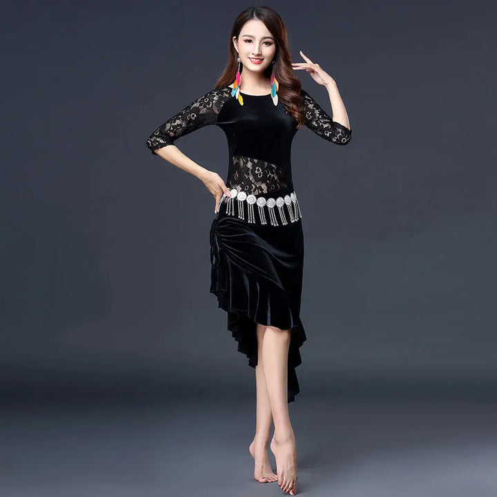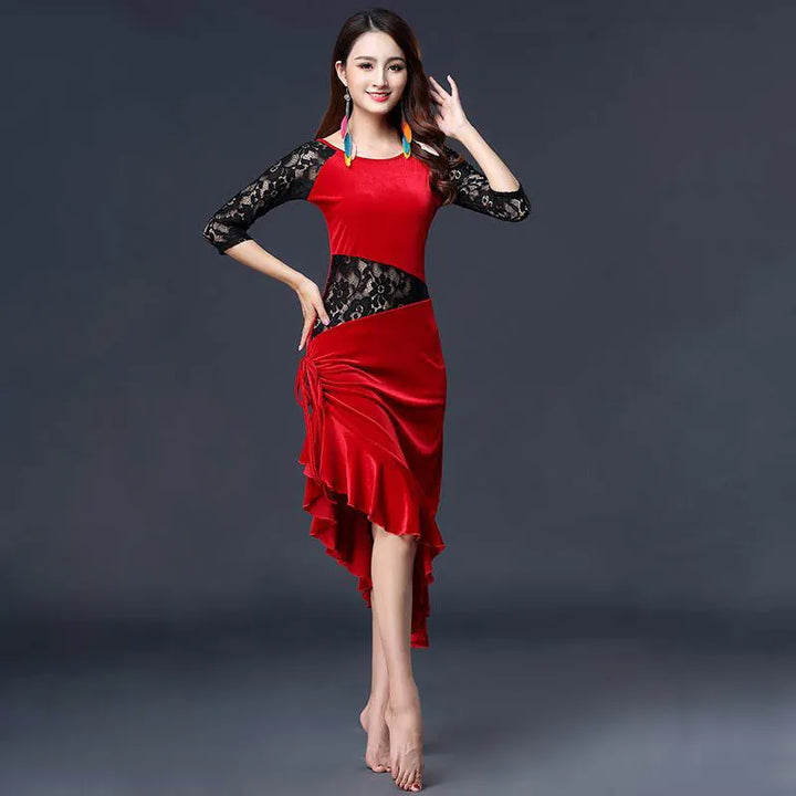 New Women Dance Wear Ballroom Dress Samba Costume Sexy Party Dresses Floral Lace One-piece Latin Dress Velvet