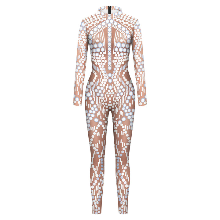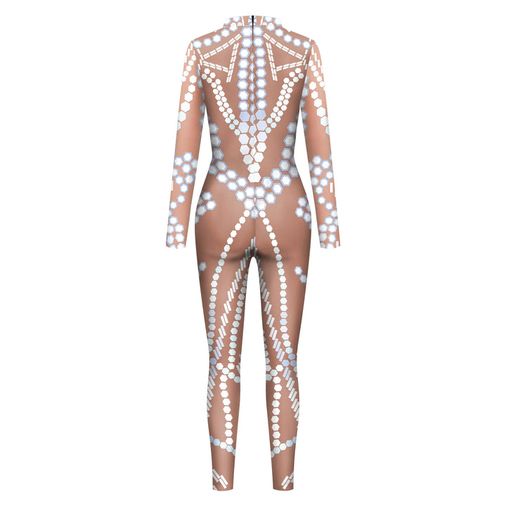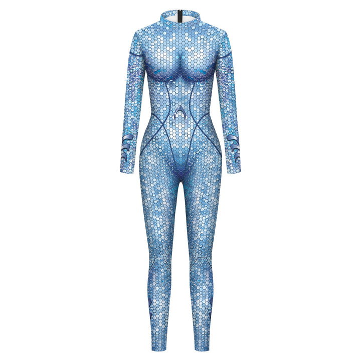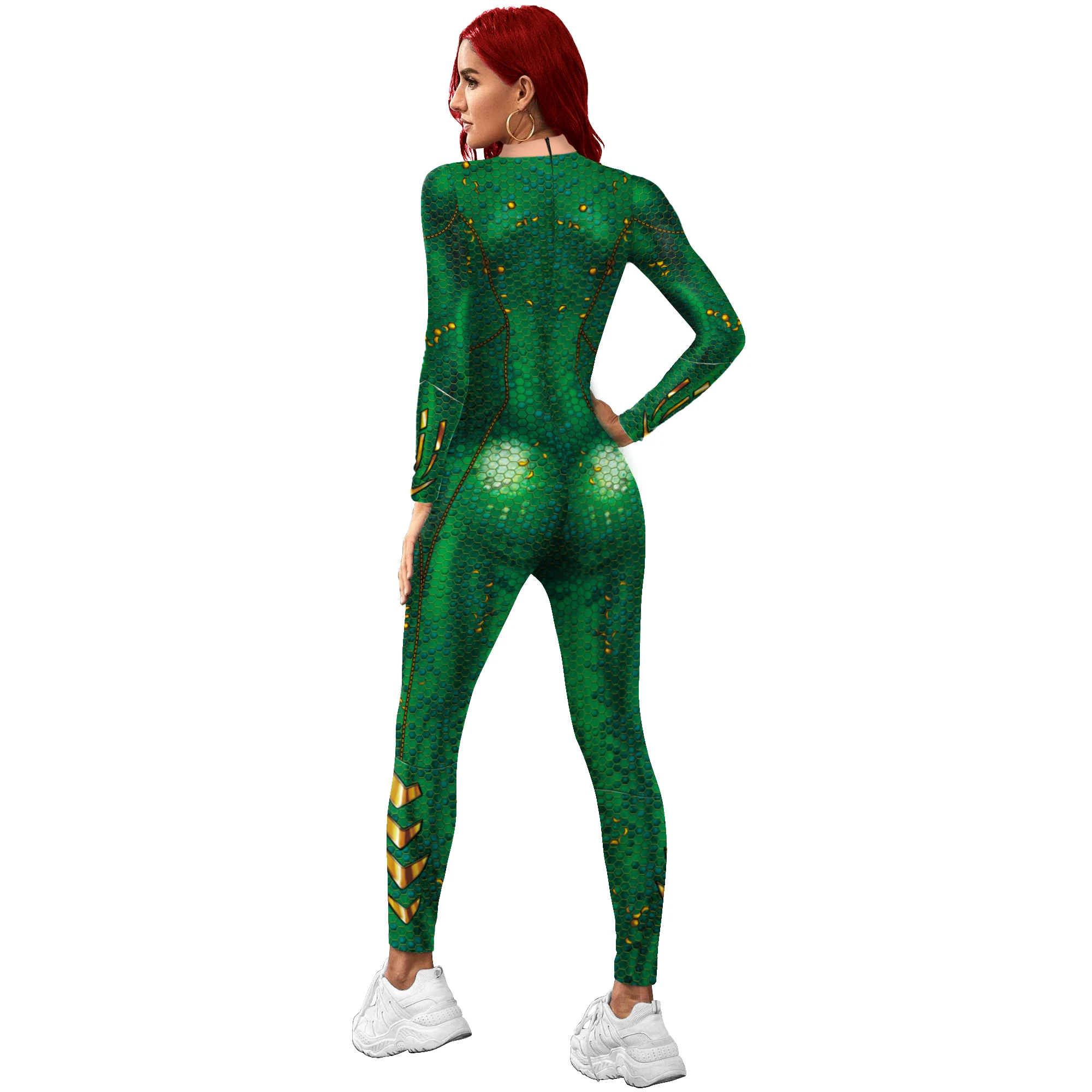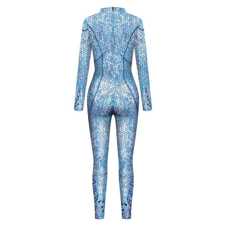Sexy Mermaid Sequins 3D Print Halloween Costume For Women Bodysuits Long Sleeve Cosplay Party Tight Jumpsuits