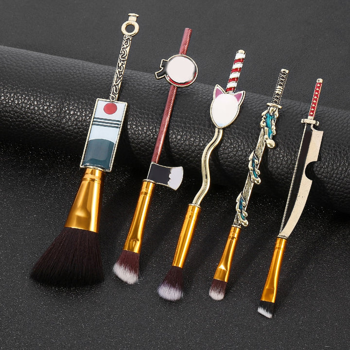 5pcs Makeup Brush Set Anime Demons cos Slayerer Makeup Brush Tool Face Cosmetic Powder Highlight Blending Eyebrow Eyeshadow Brush Kit