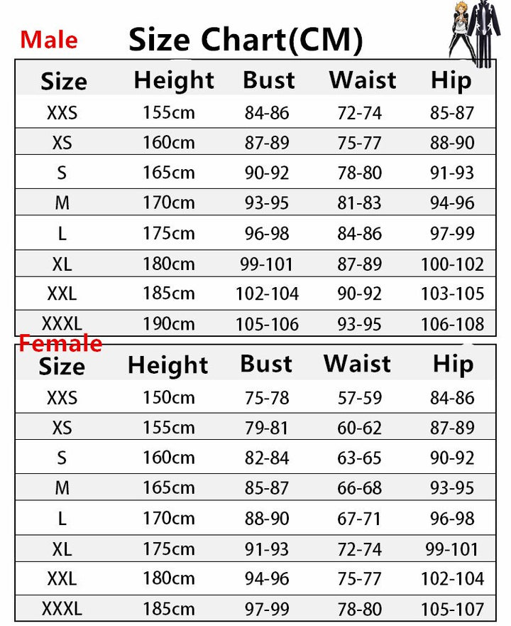 As all of our costume is hand-sewn, the finished costume may vary by approximately one (1-2) inch in either direction of the specified measurements.