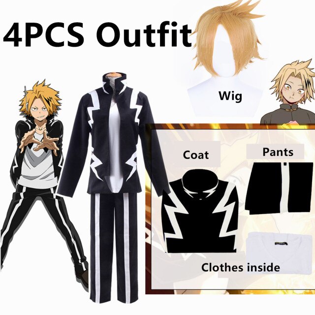 Anime Bokuku no Hero Academiaia My Hero Kaminariri Denkiki Cosplay Costume Stage 4 Piece Set T Shirt+Pants+Jacket Halloween Wig