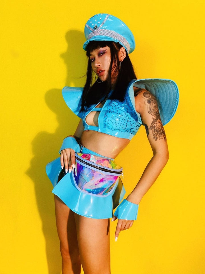 Includes: (Hat+Tops+Shorts+Girdle+Gloves)