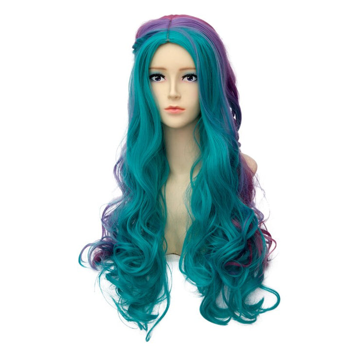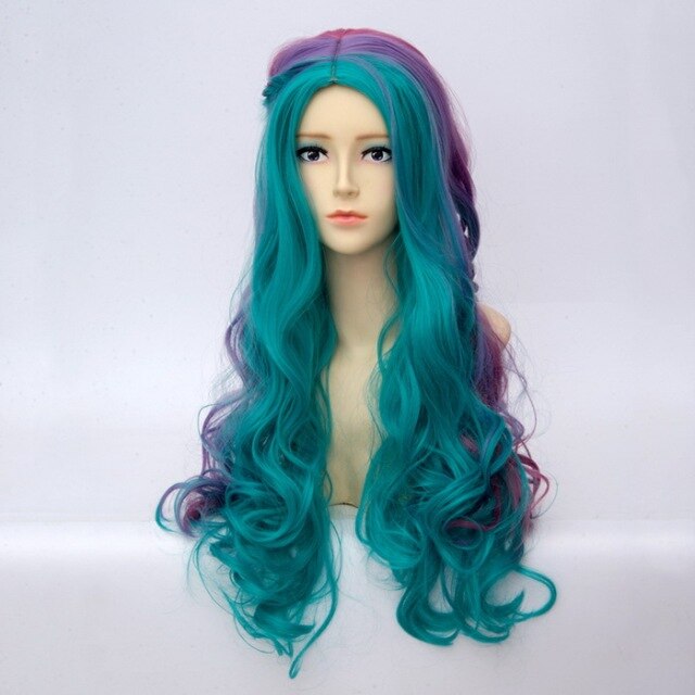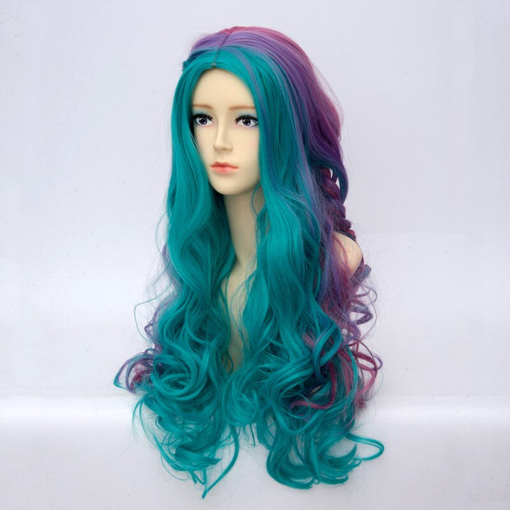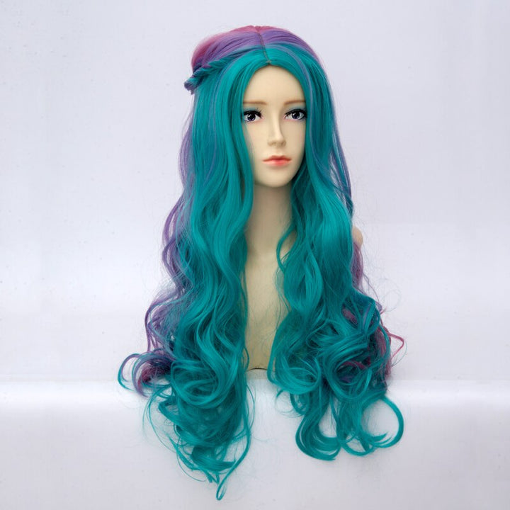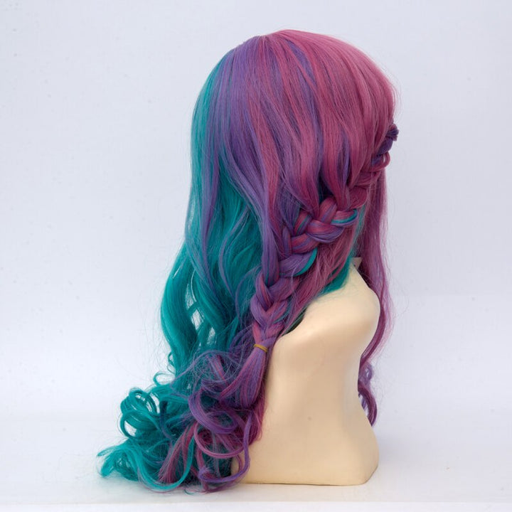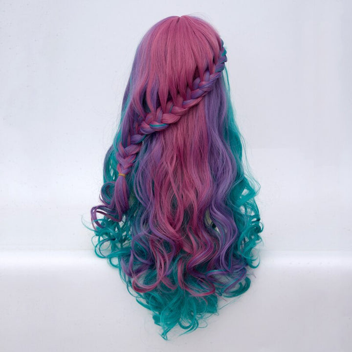 Braiding Style Long Curly Rainbow Wig Cosplay Costume Synthetic Hair Perucasas Fashion Harajukuku Lolita Long Colorful Hairpiece