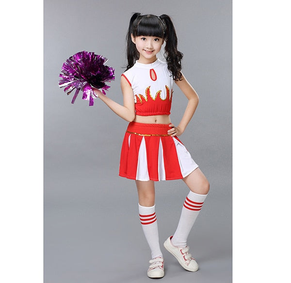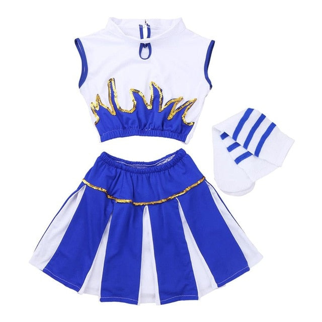 Children Kids Girls Cheerleader Costume School Child Cheer Costume Outfit for Carnival Party Halloween Cosplay Dress Up Clothes