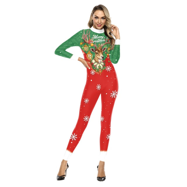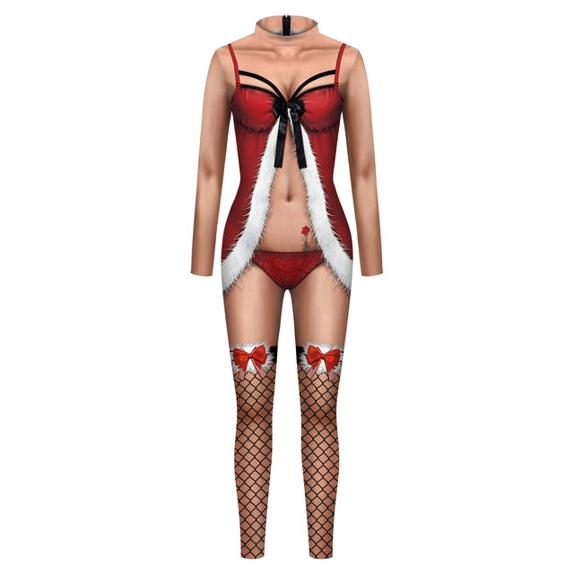 Christmas Costume For Women 3D Printed Sexy Rompers Outfits bodysuit Playsuit Jumpsuit Cosplay Costumes