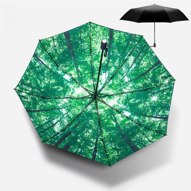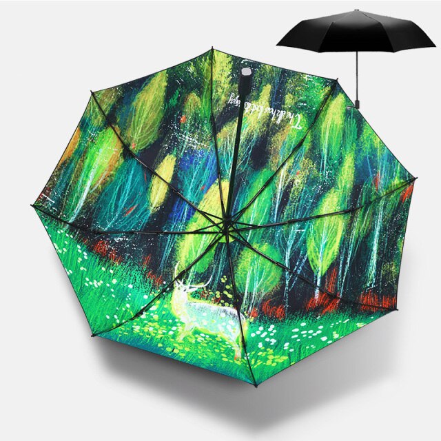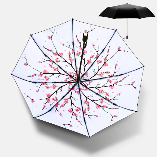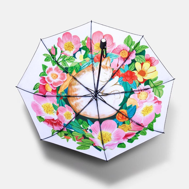 Colorful Art Illustration Cartoon Cat in Flower Sun Rain Umbrellas For Women 3 Folding Thickening 8 Rib Sunshade Umbrella