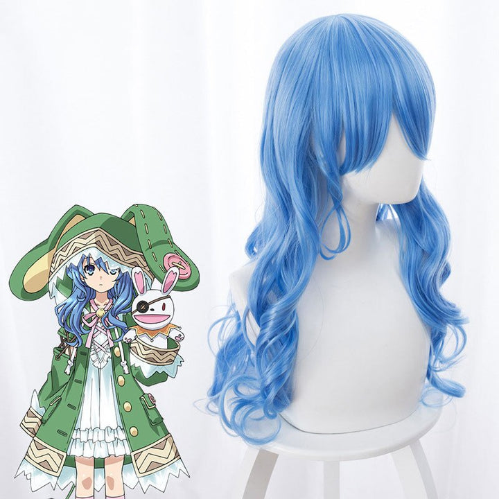 Datinging a Battle III Shitonono Mixed Blue Long Curly Hair Cos Anime Wig Cosplay Game Fluffy Perform Molding Female Kawaii Hair Wig