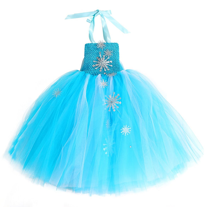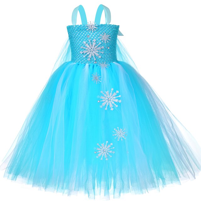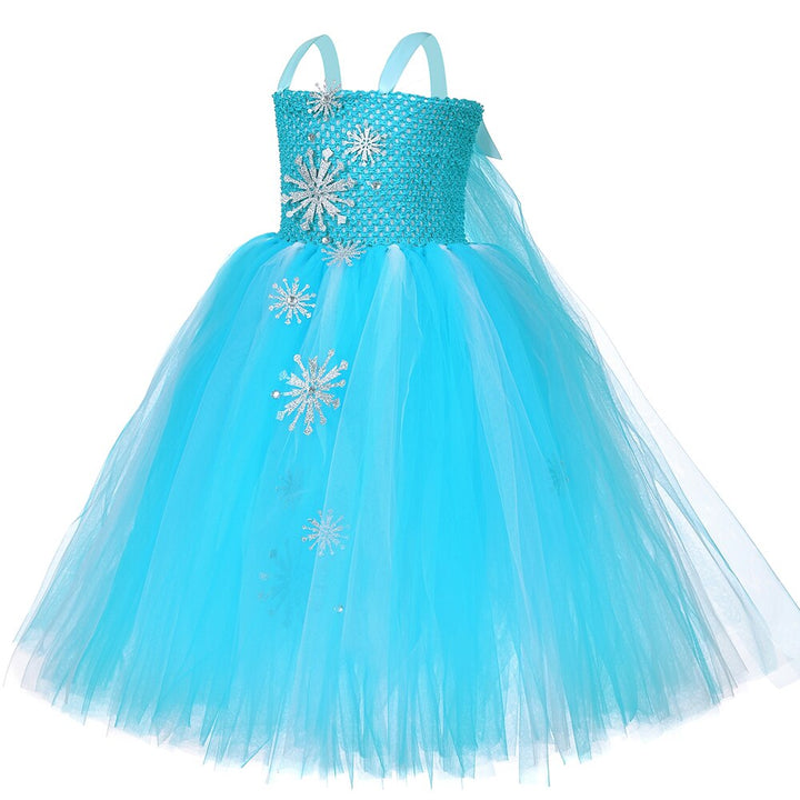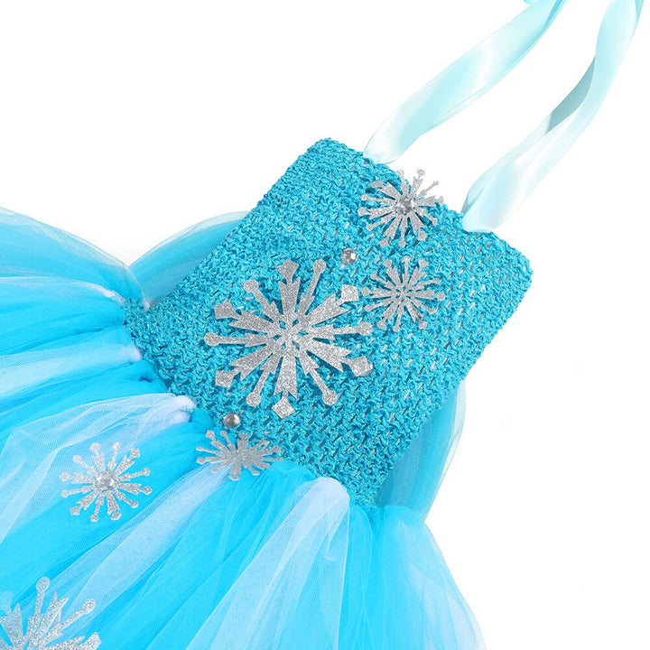 Fancy Princess Dress Girls Kids White Snowflake Cosplay Costume Carnival Pageant Birthday Ball Party Gown Dress for Child