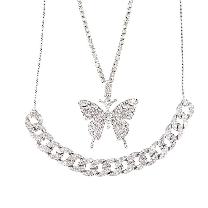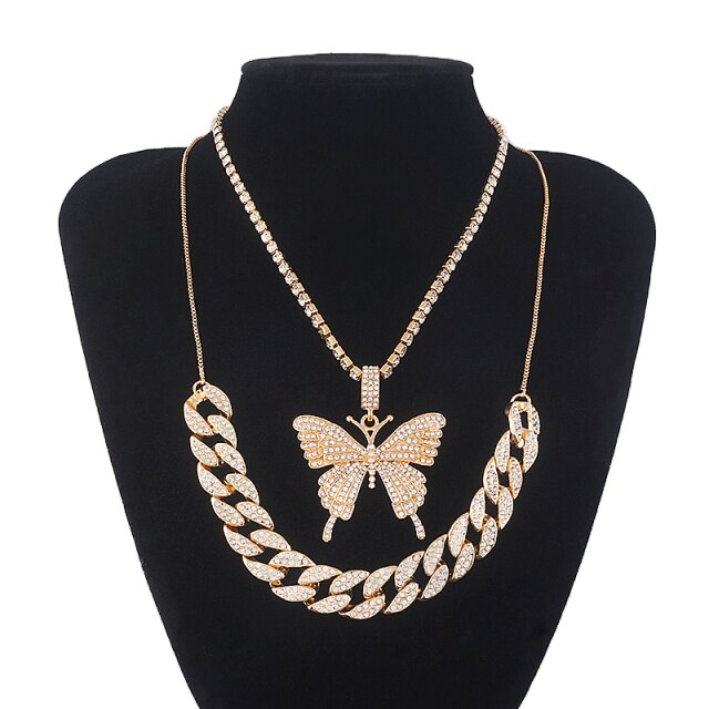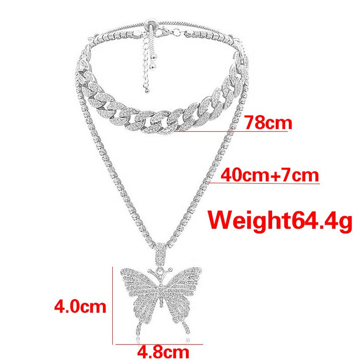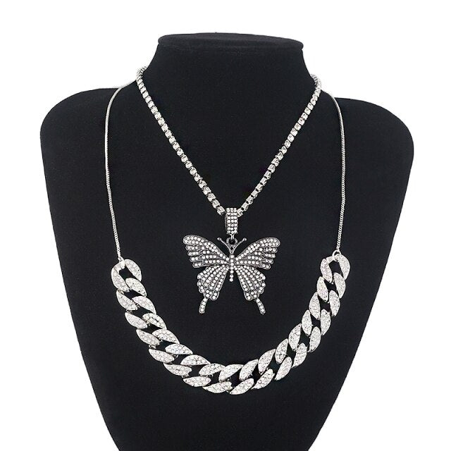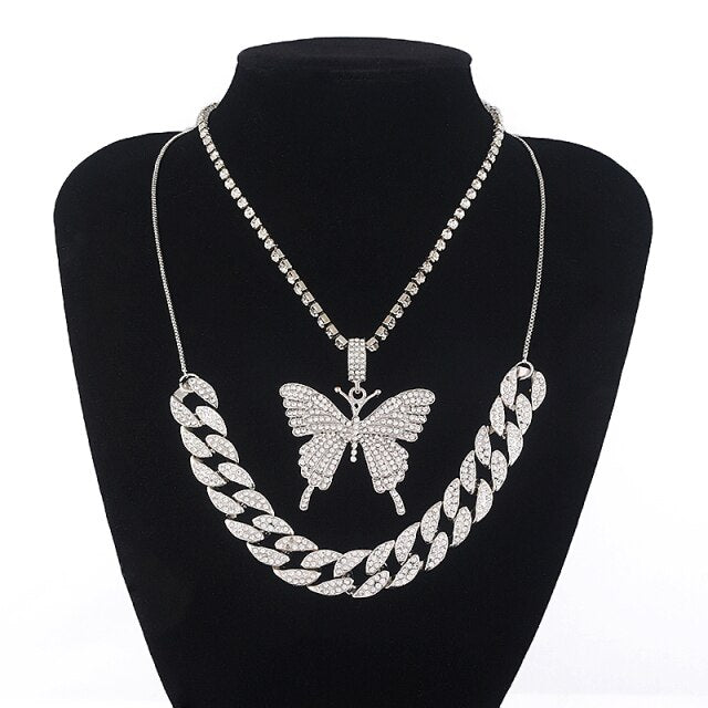Fashion Luxury Butterfly Necklace Double Butterfly Crystal Pendant Thick Chain Charm Necklace Woman Jewelry Accessories Giftl