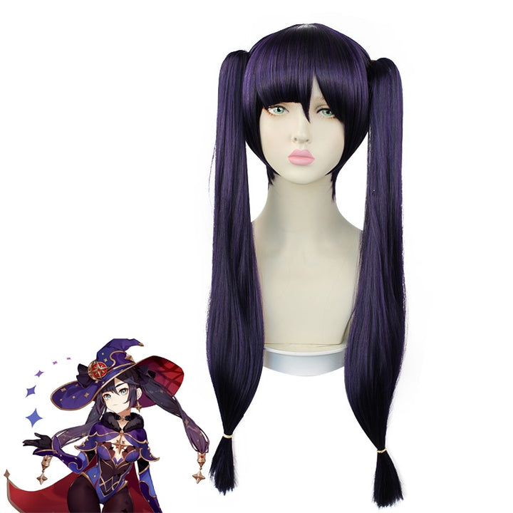 Game Genshinn and Impact Monana Ponytails Long Wig Cosplay Costume Heat Resistant Synthetic Hair Women Party Wigs