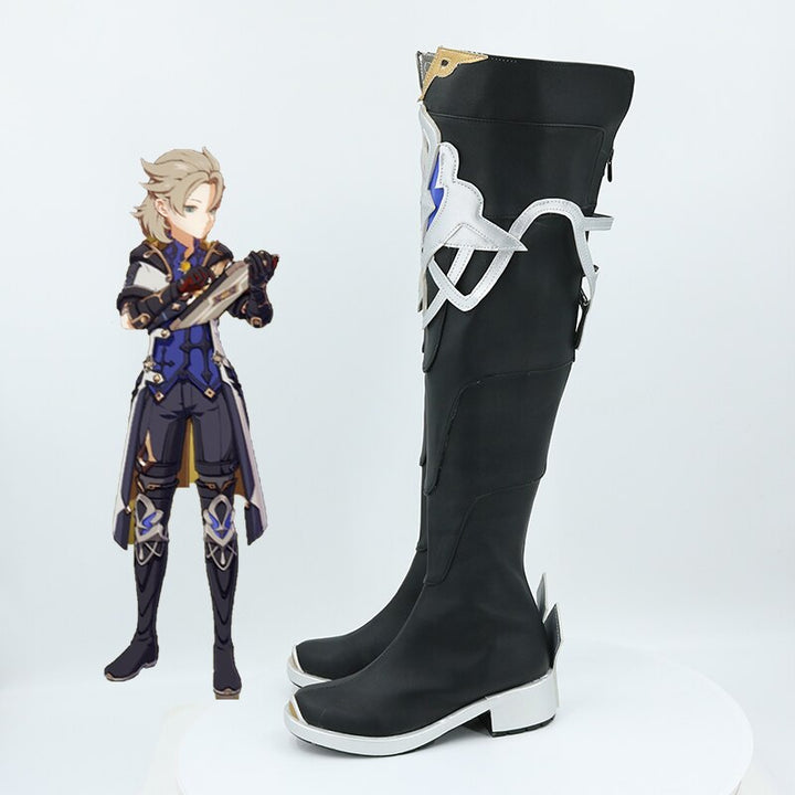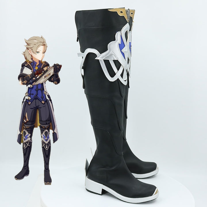 GenshinImpactAlbedo Cosplay 35cm Short Linen Wig Cosplay Hair GenshinImpact Albedo Boots Halloween PU leather Women men Shoes