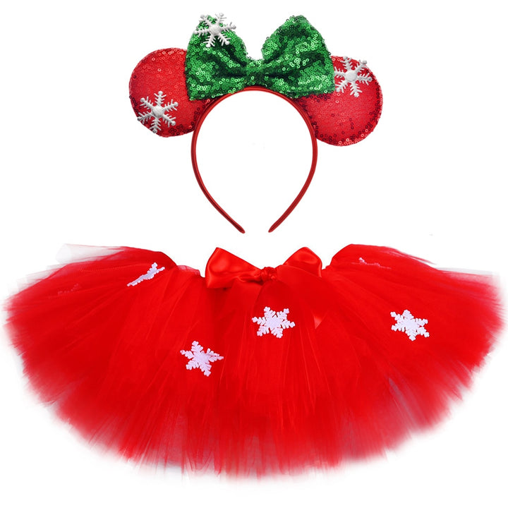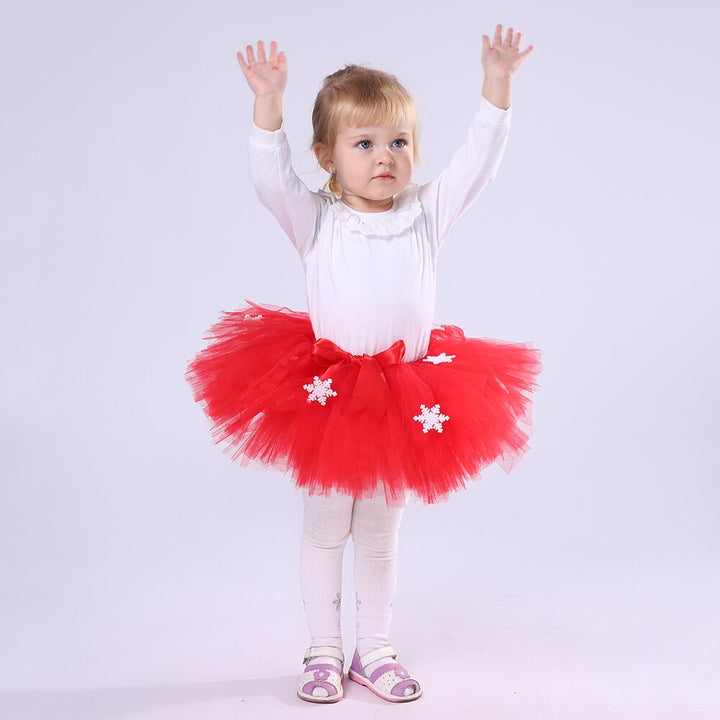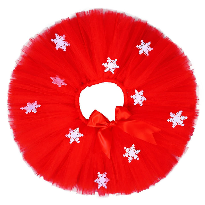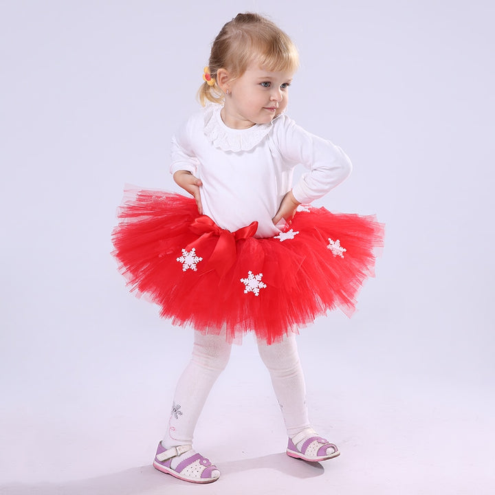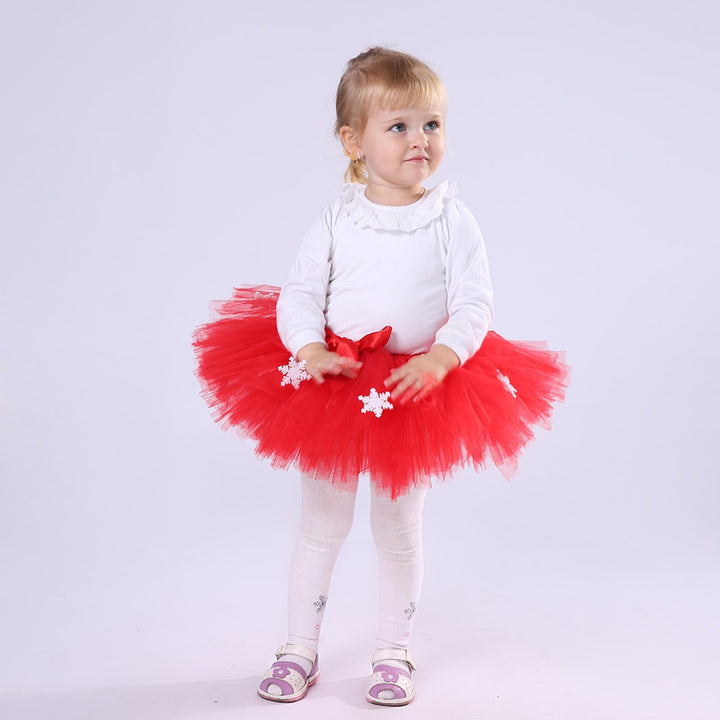 Girls Christmas Tutu Skirt Red Snowflake Kids Tulle Skirt Fluffy Mini Tutu Skirt for Baby Girl New Year Xmas Party Costume 0-14Y
