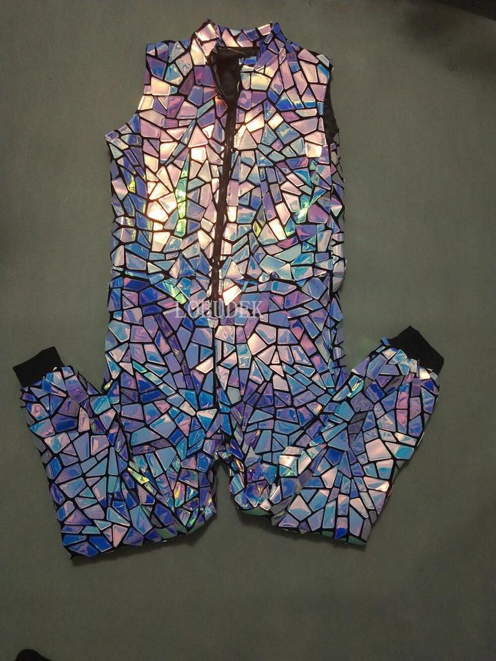 Hip Hop Dance Costume Men's Dancer Groups Singer Performance Glitter Laser Sequins Sleeveless Jumpsuit Bar Nightclub Stage Wear